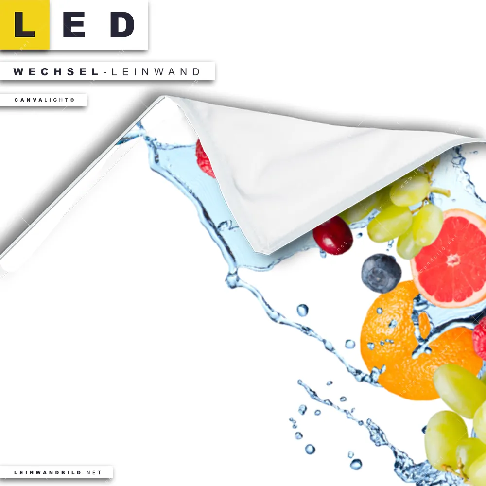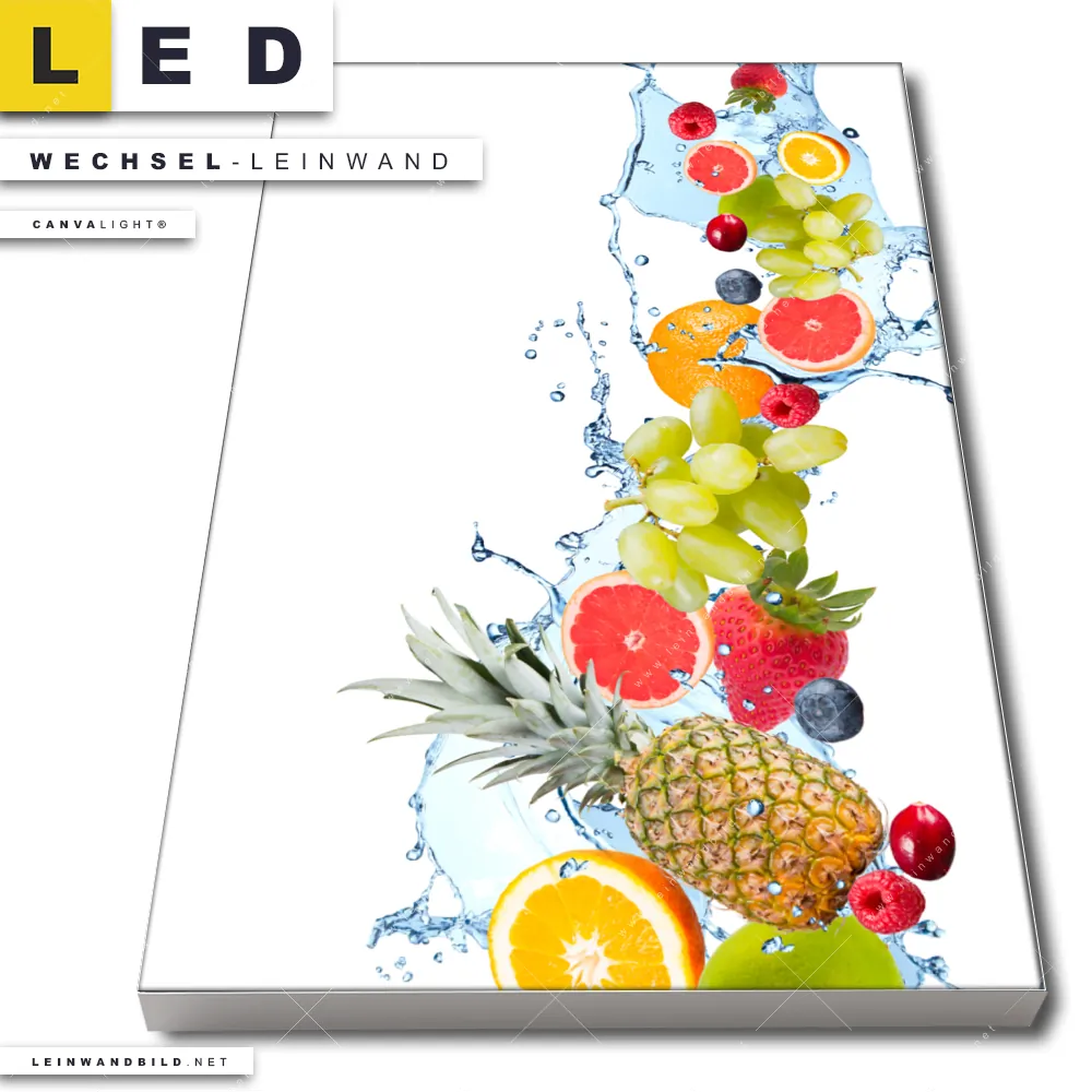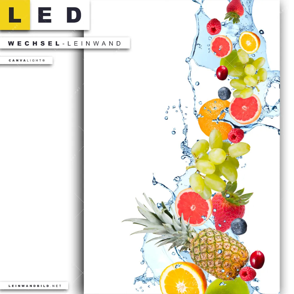 LED Wechsel-Leinwand Canvalight® TEX | Früchte in Spritzwasser | Hochformat