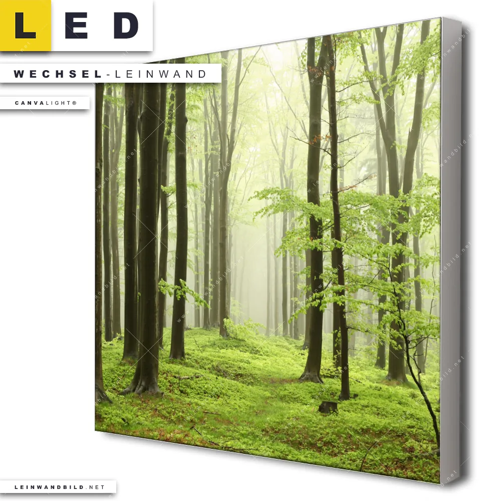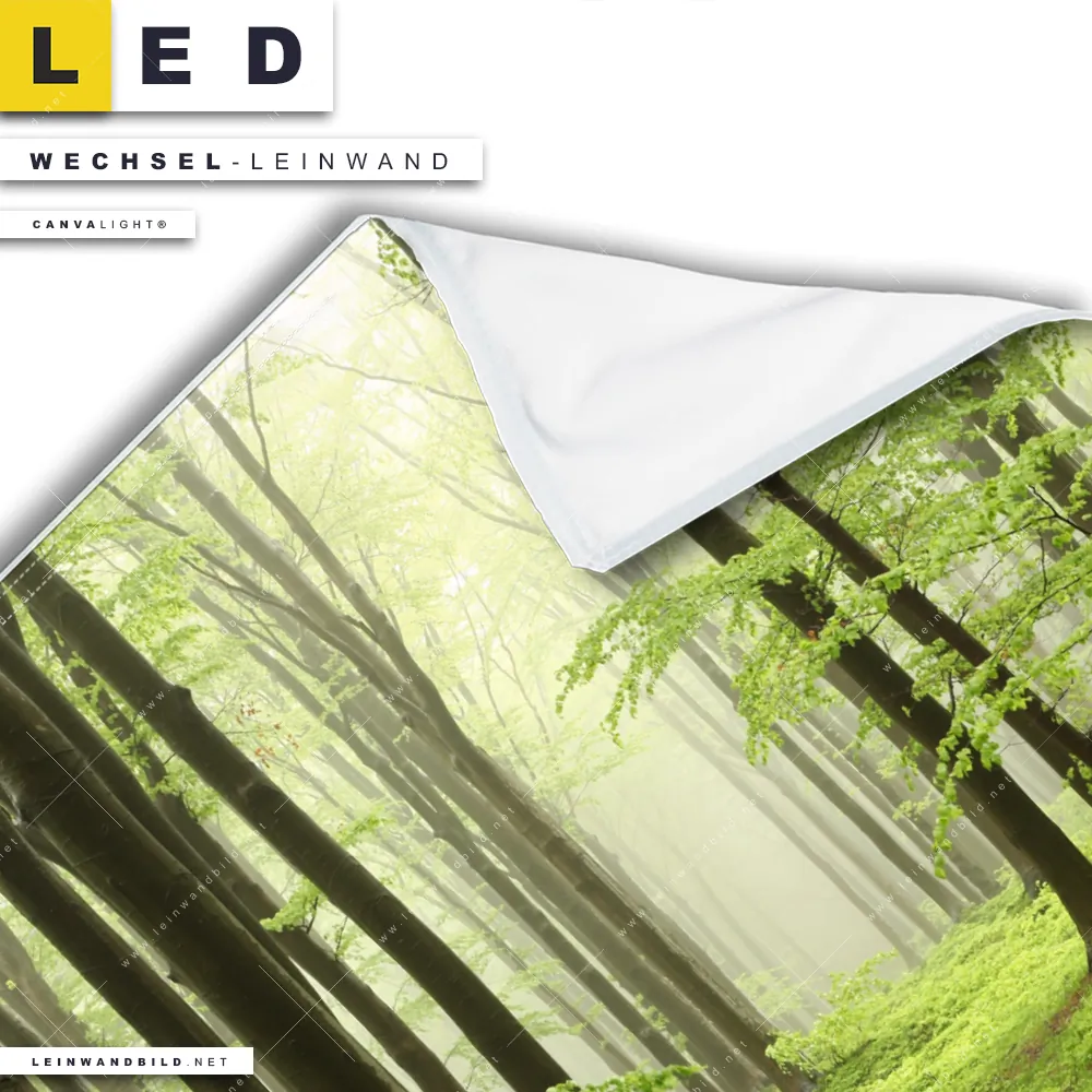 Du konfigurierst Deine individuelle LED Wechsel-Leinwand Canvalight® TEX | Frühling im Buchenwald | Quadrat und wir produzieren sie NEU für Dich. Unsere Landschaften, Wald - Bäume Austausch-Fotoleinwände für Canvalight® LED Bilder sind KEINE Lagerware. Du bist Dir unsicher, welches Motiv oder Format das richtige für dein individuelles LED Wechselmotiv auf Leinwand ist, dann helfen wir dir gerne weiter und beraten dich!
