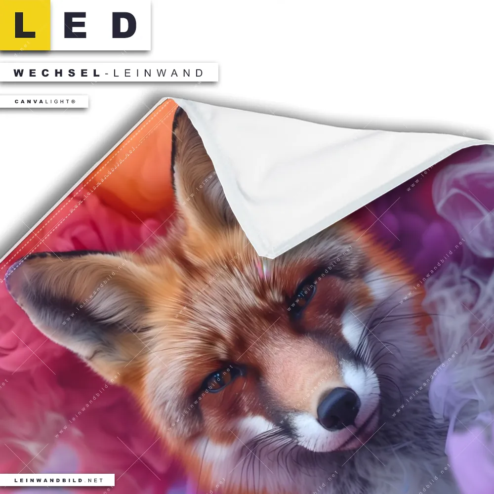 LED Wechsel-Leinwand Canvalight® TEX | Fuchs in Farbnebel | Quadrat