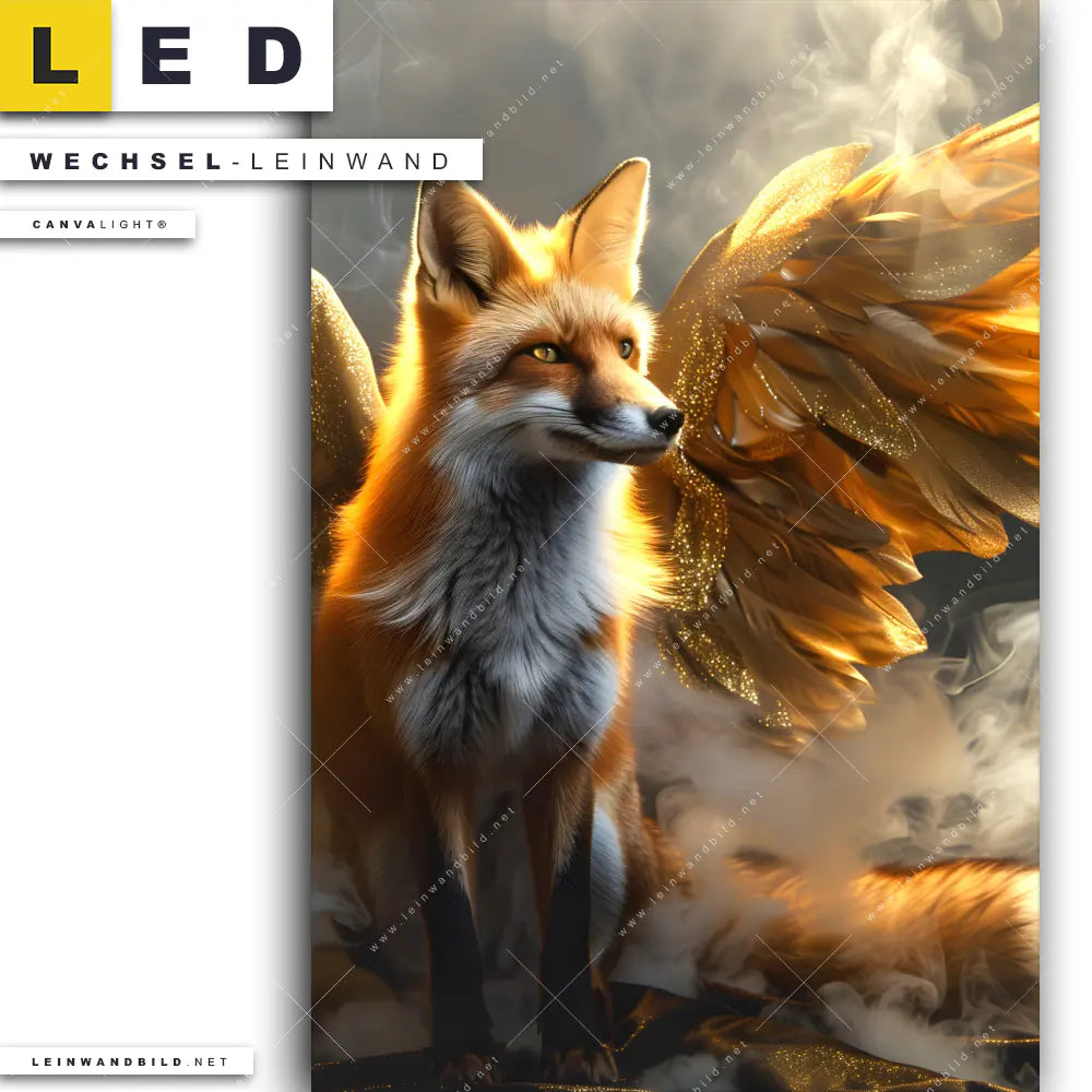LED Wechsel-Leinwand Canvalight® TEX | Fuchs mit goldenen Flügeln | Hochformat