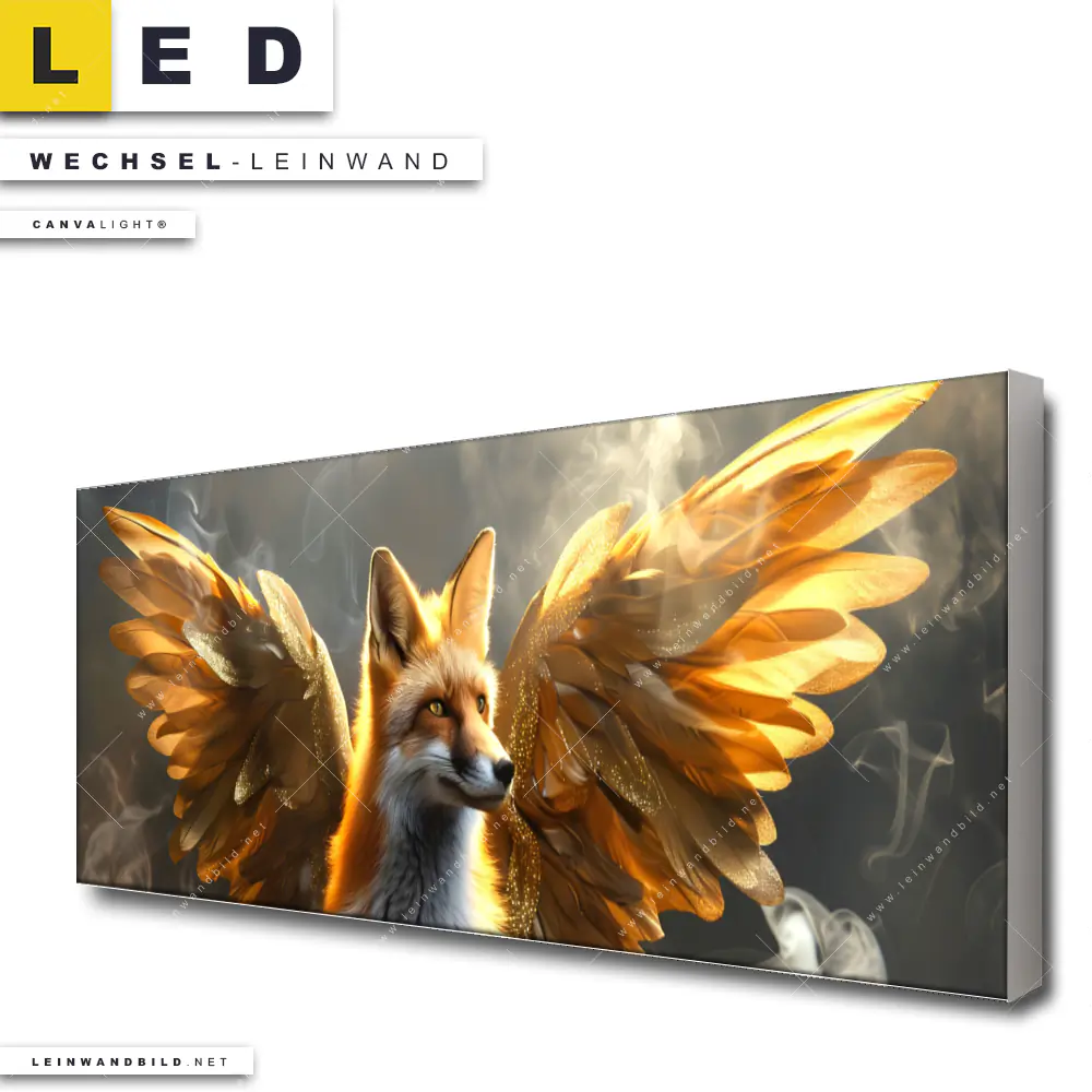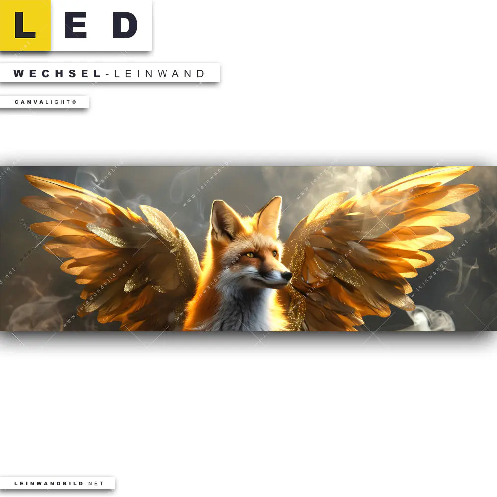 LED Wechsel-Leinwand Canvalight® TEX | Fuchs mit goldenen Flügeln | Panorama