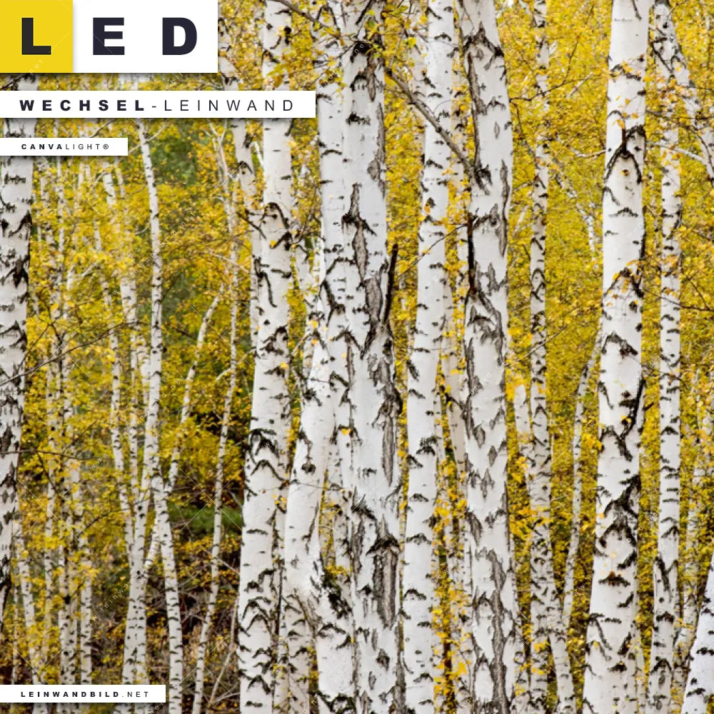 Bitte beachte, dass die Farben, der auf dem Monitor abgebildeten herbstlicher Birkenwald Darstellung, möglicherweise von den Originalfarben deiner Canvalight® TEX Wechsel-Leinwand abweichen können.
