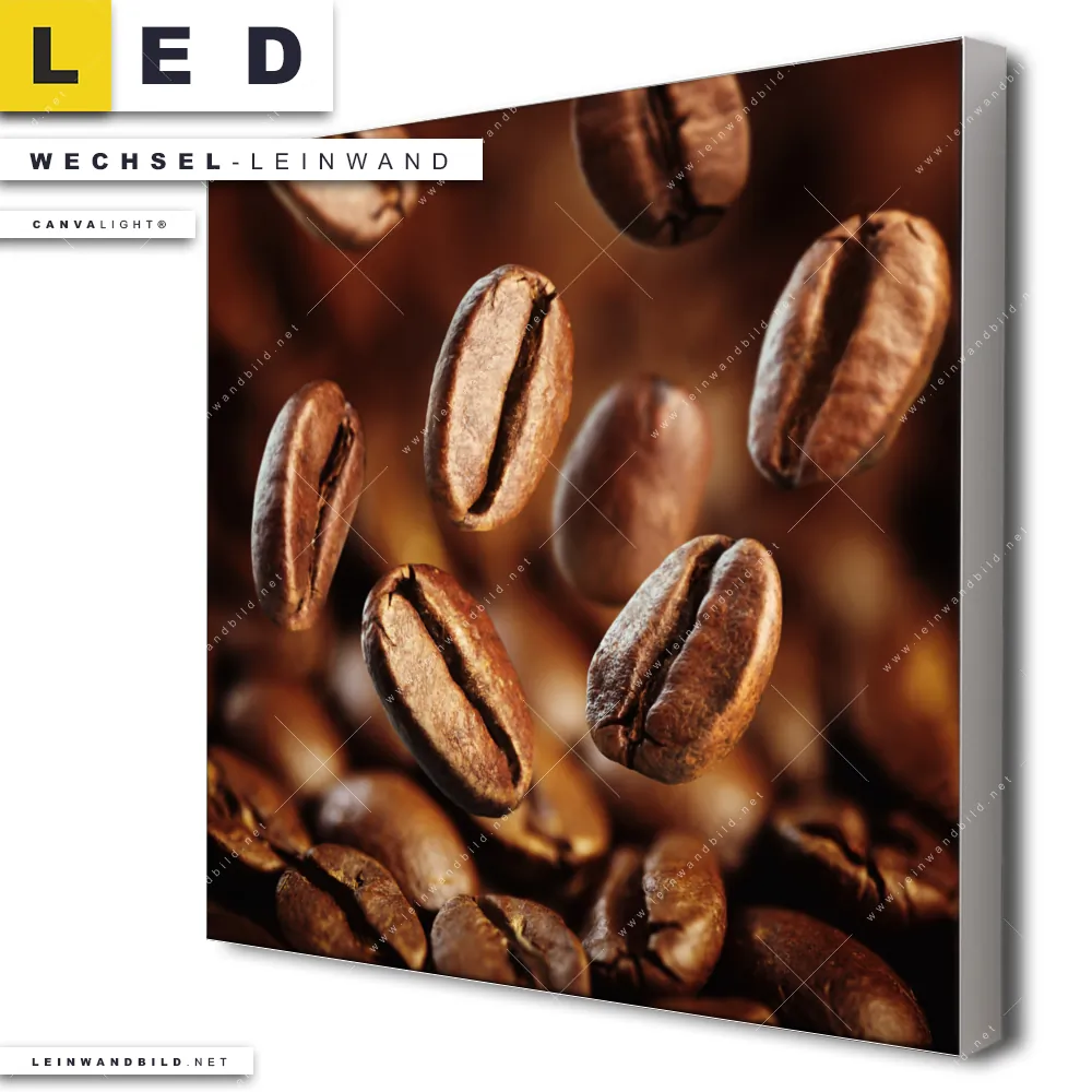 Du bist auf der Suche nach einer Essen - Trinken Wechsel-Leinwand für Dein LED-Leinwandbild im Quadratischen Format? Begriffe wie Kaffeebohnen, Kaffee, Splash, Kaffeegenuss, Trinken, Heißgetränk, Barista, Cafe, Espresso, Kaffeeliebhaber haben Dich auf der Suche nach Deiner Ersatz-Leinwand für dein LED Wandbild mit wechselbarer Leinwand inspiriert? Farben wie Braun dürfen auf Deinem neuen Wechselmotiv für Dein XXL Leinwand-LED-Bild nicht fehlen und Leinwände im Natürlich - Realistisch Stil für Leuchtbilder passen perfekt zu Deinem Einrichtungsstil?