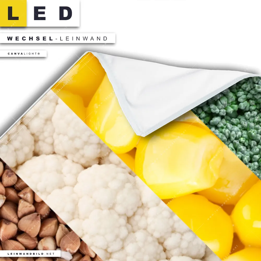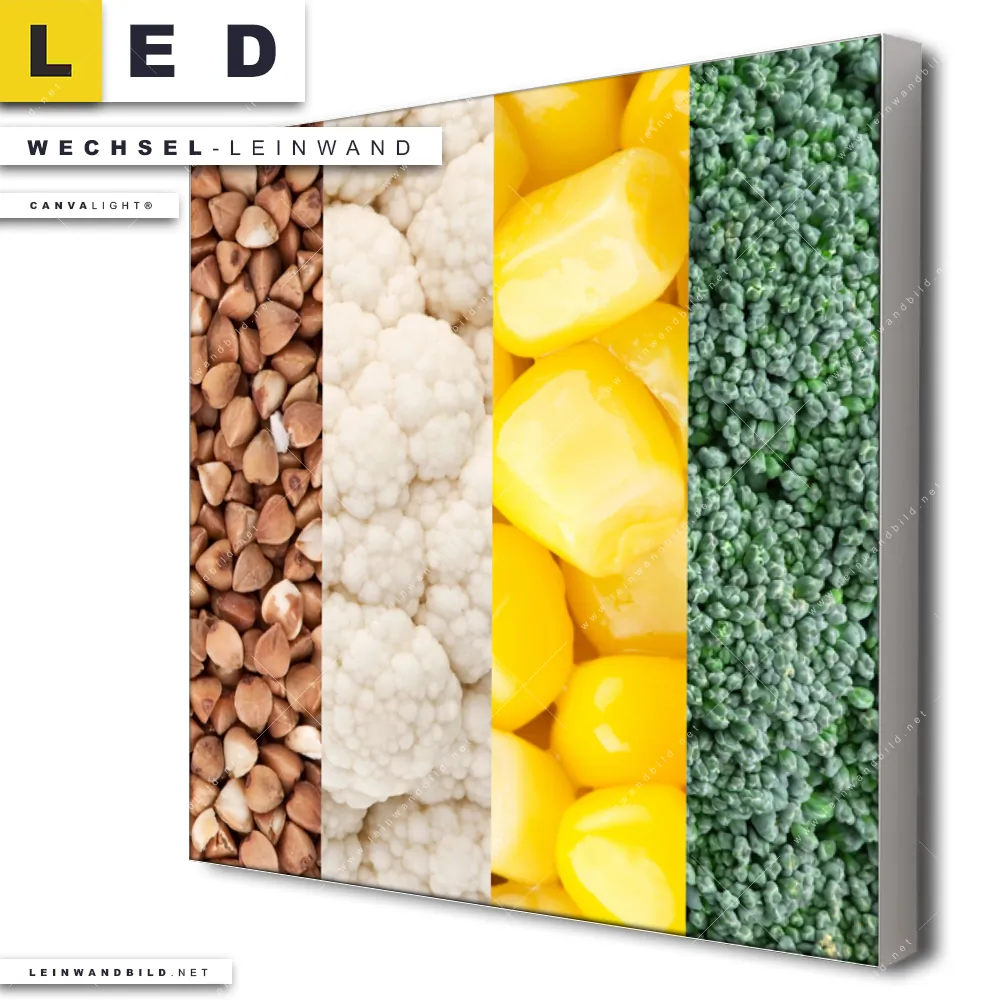 Du konfigurierst Deine individuelle LED Wechsel-Leinwand Canvalight® TEX | Gesunde Ernährung | Quadrat und wir produzieren sie NEU für Dich. Unsere Essen - Trinken Austausch-Fotoleinwände für Canvalight® LED Bilder sind KEINE Lagerware. Du bist Dir unsicher, welches Motiv oder Format das richtige für dein individuelles LED Wechselmotiv auf Leinwand ist, dann helfen wir dir gerne weiter und beraten dich!