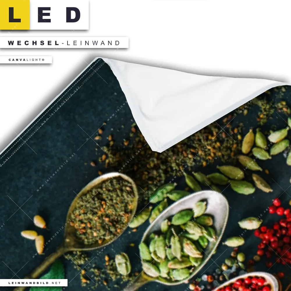 Du bist auf der Suche nach einer Essen - Trinken Wechsel-Leinwand für Dein LED-Leinwandbild im Schmalen Format? Begriffe wie Gewürze, Kräuter, Löffel, kochen haben Dich auf der Suche nach Deiner Ersatz-Leinwand für dein LED Wandbild im Panorama-Hochformat mit wechselbarer Leinwand inspiriert? Farben wie Bunt, Schwarz dürfen auf Deinem neuen Wechselmotiv für Dein XXL Leinwand-LED-Bild nicht fehlen und Leinwände im Modern Art, Natürlich - Realistisch Stil für Leuchtbilder passen perfekt zu Deinem Einrichtungsstil?