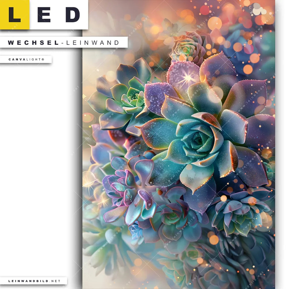 LED Wechsel-Leinwand Canvalight® TEX | Glänzende Sukkulenten | Hochformat