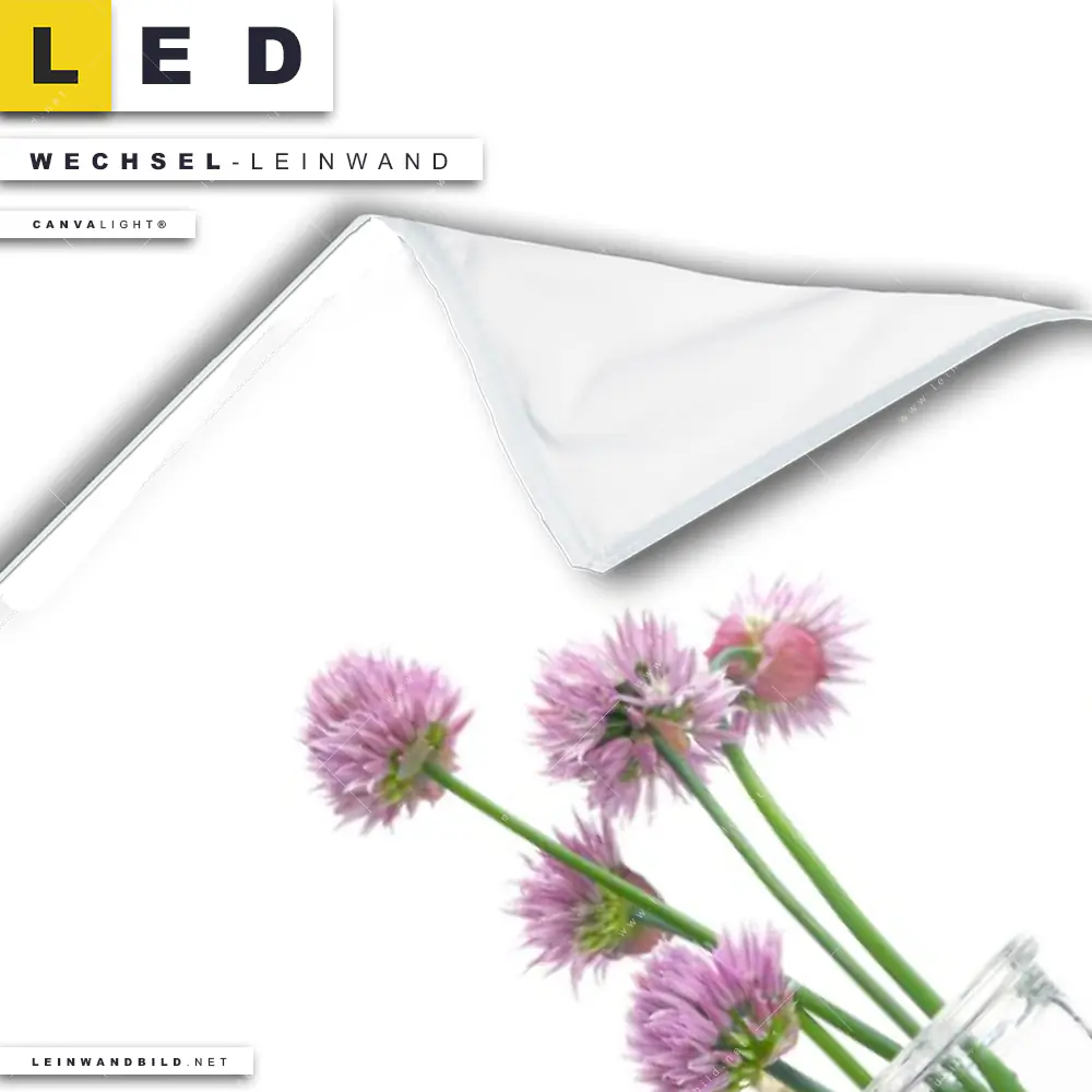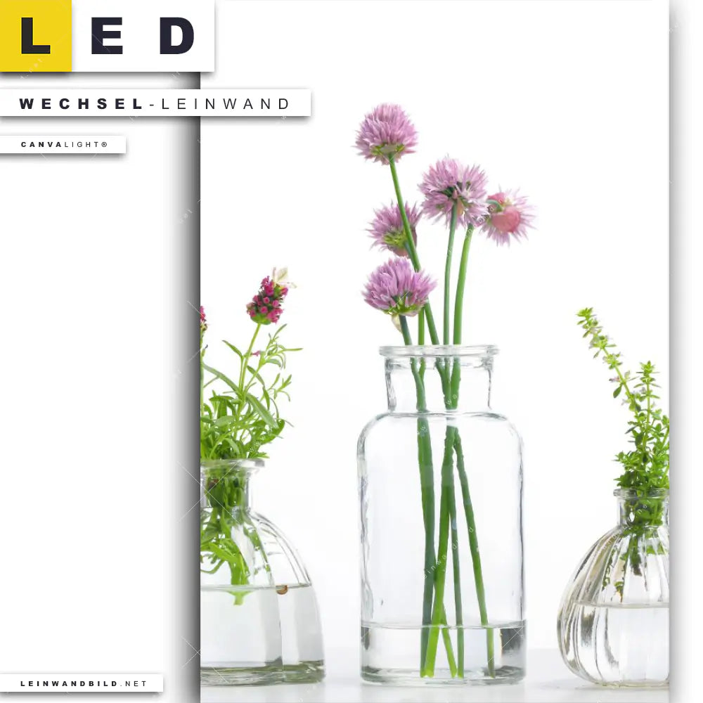 LED Wechsel-Leinwand Canvalight® TEX | Glasvasen mit Kräutern | Hochformat