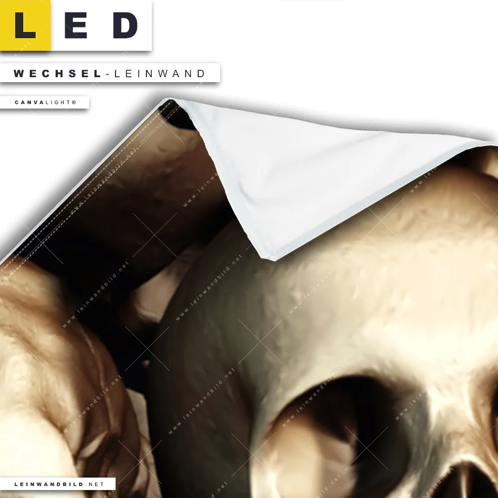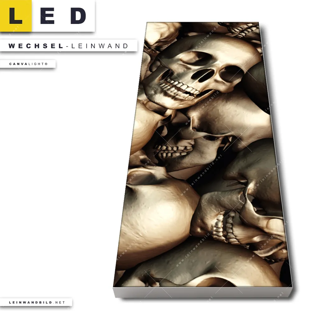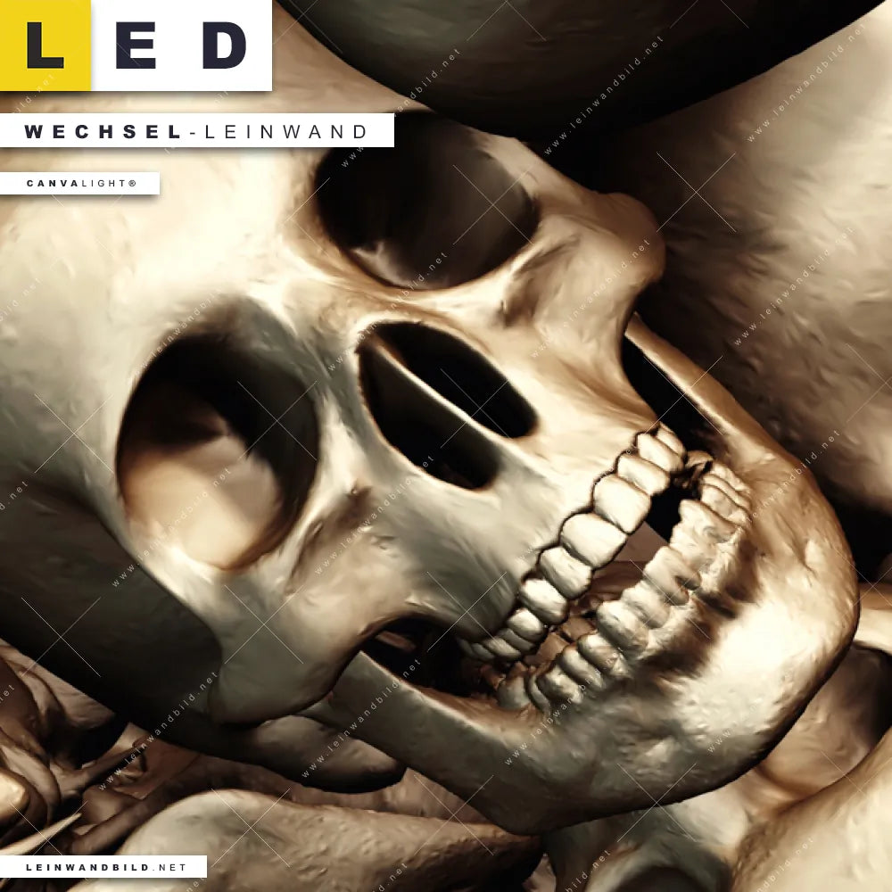 Du bist auf der Suche nach einer Porträts - Menschen Wechsel-Leinwand für Dein LED-Leinwandbild im Schmalen Format? Begriffe wie Schädel, Totenkopf, Skelett, Skull, Knochen, Totenköpfe haben Dich auf der Suche nach Deiner Ersatz-Leinwand für dein LED Wandbild im Panorama-Hochformat mit wechselbarer Leinwand inspiriert? Farben wie Gold dürfen auf Deinem neuen Wechselmotiv für Dein XXL Leinwand-LED-Bild nicht fehlen und Leinwände im Modern Art Stil für Leuchtbilder passen perfekt zu Deinem Einrichtungsstil?