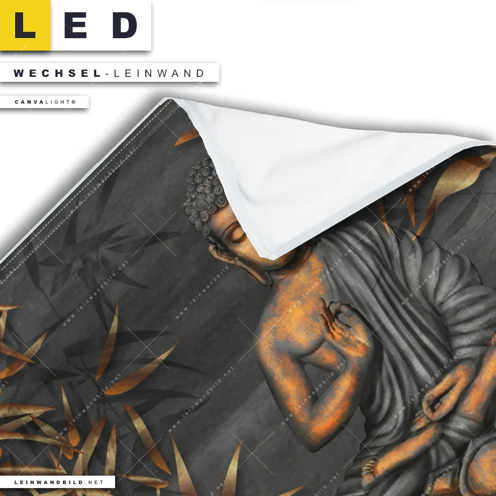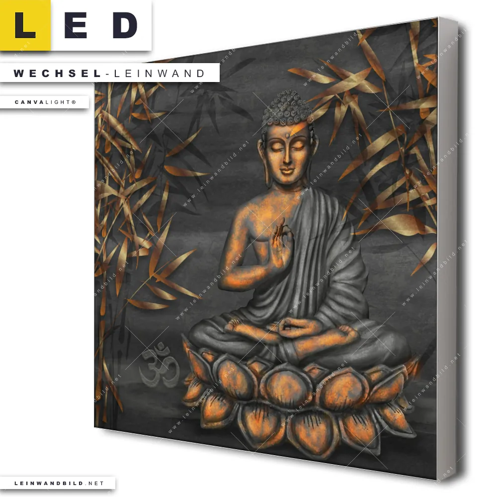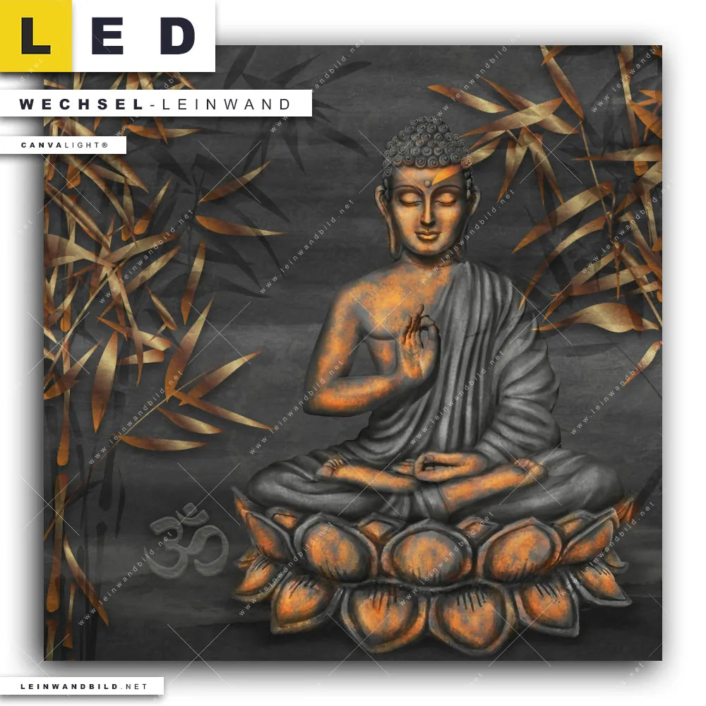 Du bist auf der Suche nach einer Buddha - Feng Shui Wechsel-Leinwand für Dein LED-Leinwandbild im Quadratischen Format? Begriffe wie Buddha, Buddhismus, Religion, Feng Shui, Zen, Meditation, Bambus, Gold haben Dich auf der Suche nach Deiner Ersatz-Leinwand für dein LED Wandbild mit wechselbarer Leinwand inspiriert? Farben wie Schwarz, Gold, Grau dürfen auf Deinem neuen Wechselmotiv für Dein XXL Leinwand-LED-Bild nicht fehlen und Leinwände im Mixed Media, Modern Art Stil für Leuchtbilder passen perfekt zu Deinem Einrichtungsstil?