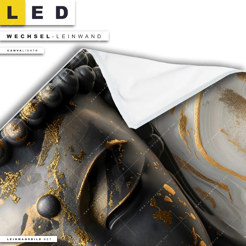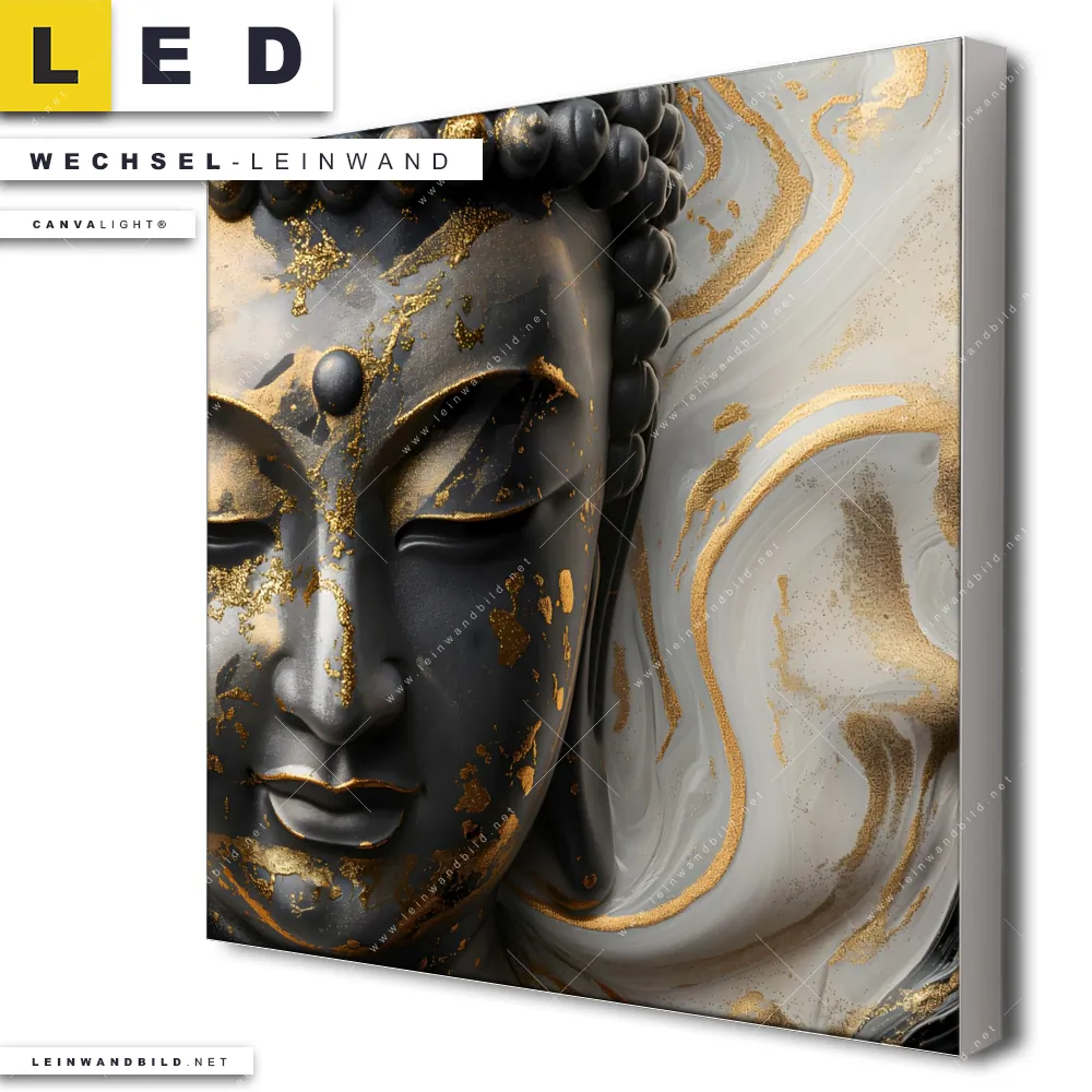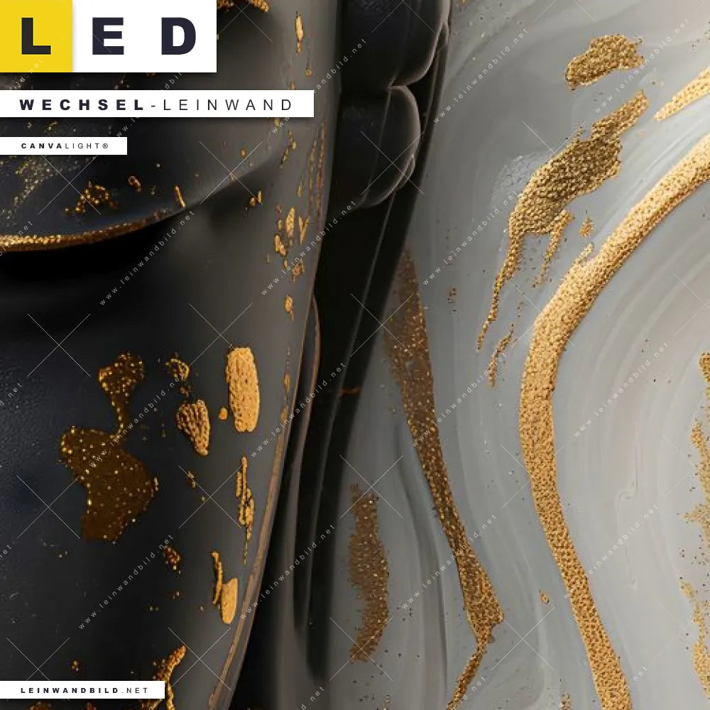 Du bist auf der Suche nach einer Buddha - Feng Shui Wechsel-Leinwand für Dein LED-Leinwandbild im Quadratischen Format? Begriffe wie Buddha, Fluid Art, Statue, Meditation, Buddhismus, Religion, Feng Shui, Zen haben Dich auf der Suche nach Deiner Ersatz-Leinwand für dein LED Wandbild mit wechselbarer Leinwand inspiriert? Farben wie Gold, Schwarz, Weiss dürfen auf Deinem neuen Wechselmotiv für Dein XXL Leinwand-LED-Bild nicht fehlen und Leinwände im Abstrakt, Schwarz - Weiss Stil für Leuchtbilder passen perfekt zu Deinem Einrichtungsstil?