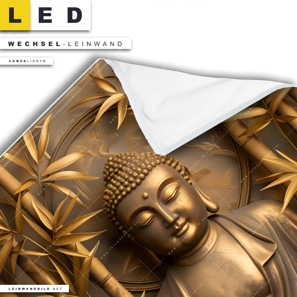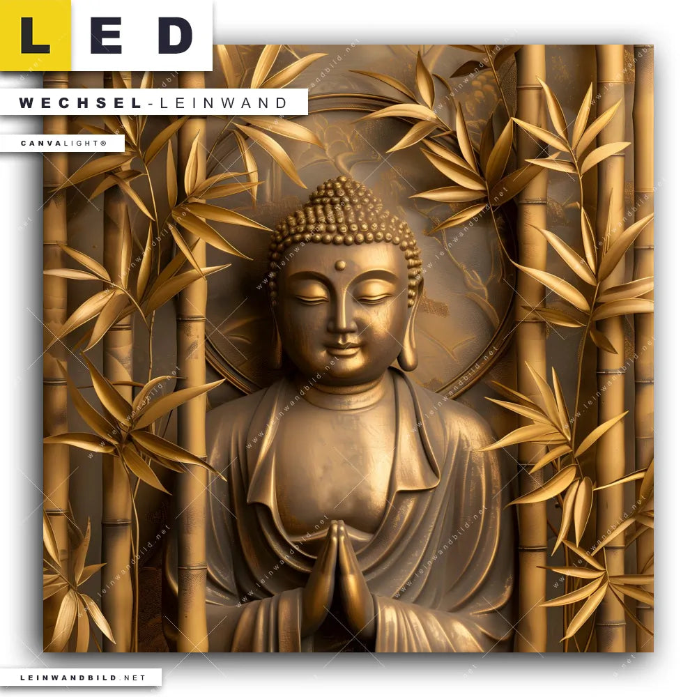 Du bist auf der Suche nach einer Buddha - Feng Shui Wechsel-Leinwand für Dein LED-Leinwandbild im Quadratischen Format? Begriffe wie Bambus, Buddha, Statue, Asien, Buddhismus, Religion, Feng Shui, Zen, Meditation haben Dich auf der Suche nach Deiner Ersatz-Leinwand für dein LED Wandbild mit wechselbarer Leinwand inspiriert? Farben wie Gold, Braun, Beige dürfen auf Deinem neuen Wechselmotiv für Dein XXL Leinwand-LED-Bild nicht fehlen und Leinwände im Modern Art Stil für Leuchtbilder passen perfekt zu Deinem Einrichtungsstil?