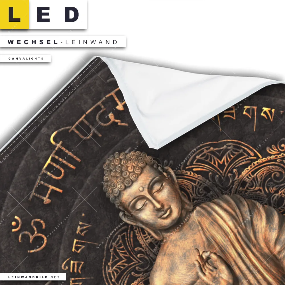 LED Wechsel-Leinwand Canvalight® TEX | Goldener Buddha No.2 | Hochformat
