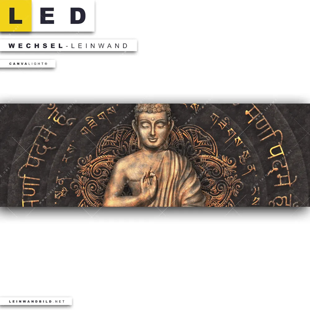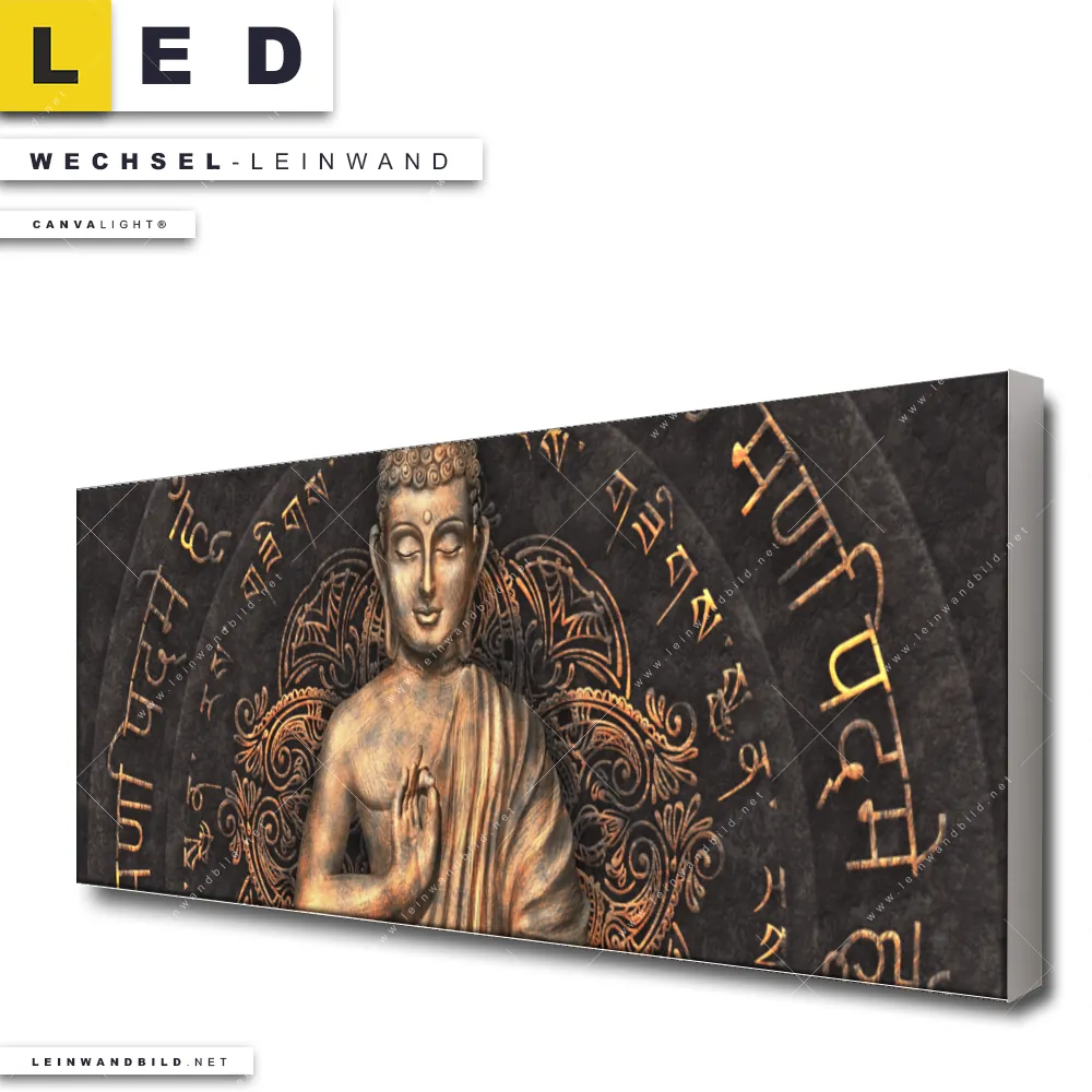Du bist auf der Suche nach einer Buddha - Feng Shui Wechsel-Leinwand für Dein LED-Leinwandbild im Panorama-Format? Begriffe wie Buddha, Buddhismus, Religion, Feng Shui, Zen, Meditation, Lotus Pose, Gold haben Dich auf der Suche nach Deiner Ersatz-Leinwand für dein extra breites LED Wandbild mit wechselbarer Leinwand inspiriert? Farben wie Schwarz, Gold dürfen auf Deinem neuen Wechselmotiv für Dein XXL Leinwand-LED-Bild nicht fehlen und Leinwände im Mixed Media, Modern Art Stil für Leuchtbilder passen perfekt zu Deinem Einrichtungsstil?