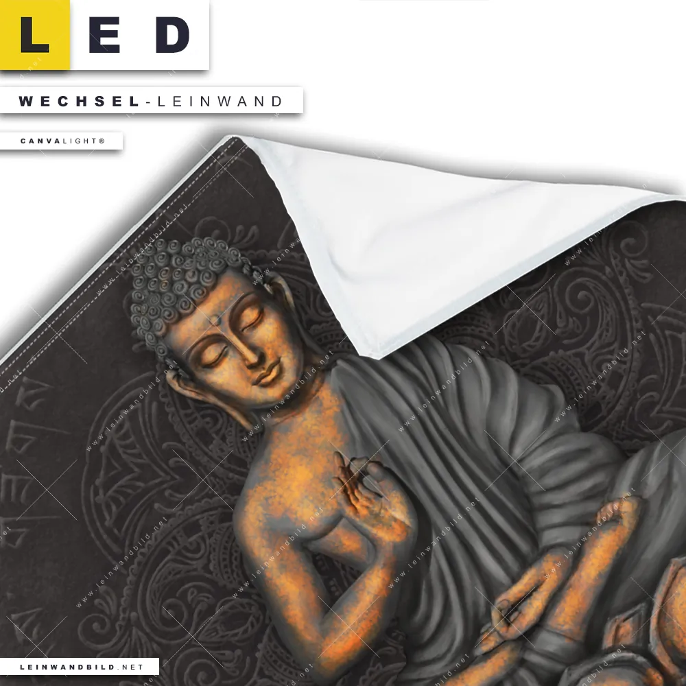 Du konfigurierst Deine individuelle LED Wechsel-Leinwand Canvalight® TEX | Goldener Buddha | Quadrat und wir produzieren sie NEU für Dich. Unsere Buddha - Feng Shui Austausch-Fotoleinwände für Canvalight® LED Bilder sind KEINE Lagerware. Du bist Dir unsicher, welches Motiv oder Format das richtige für dein individuelles LED Wechselmotiv auf Leinwand ist, dann helfen wir dir gerne weiter und beraten dich!
