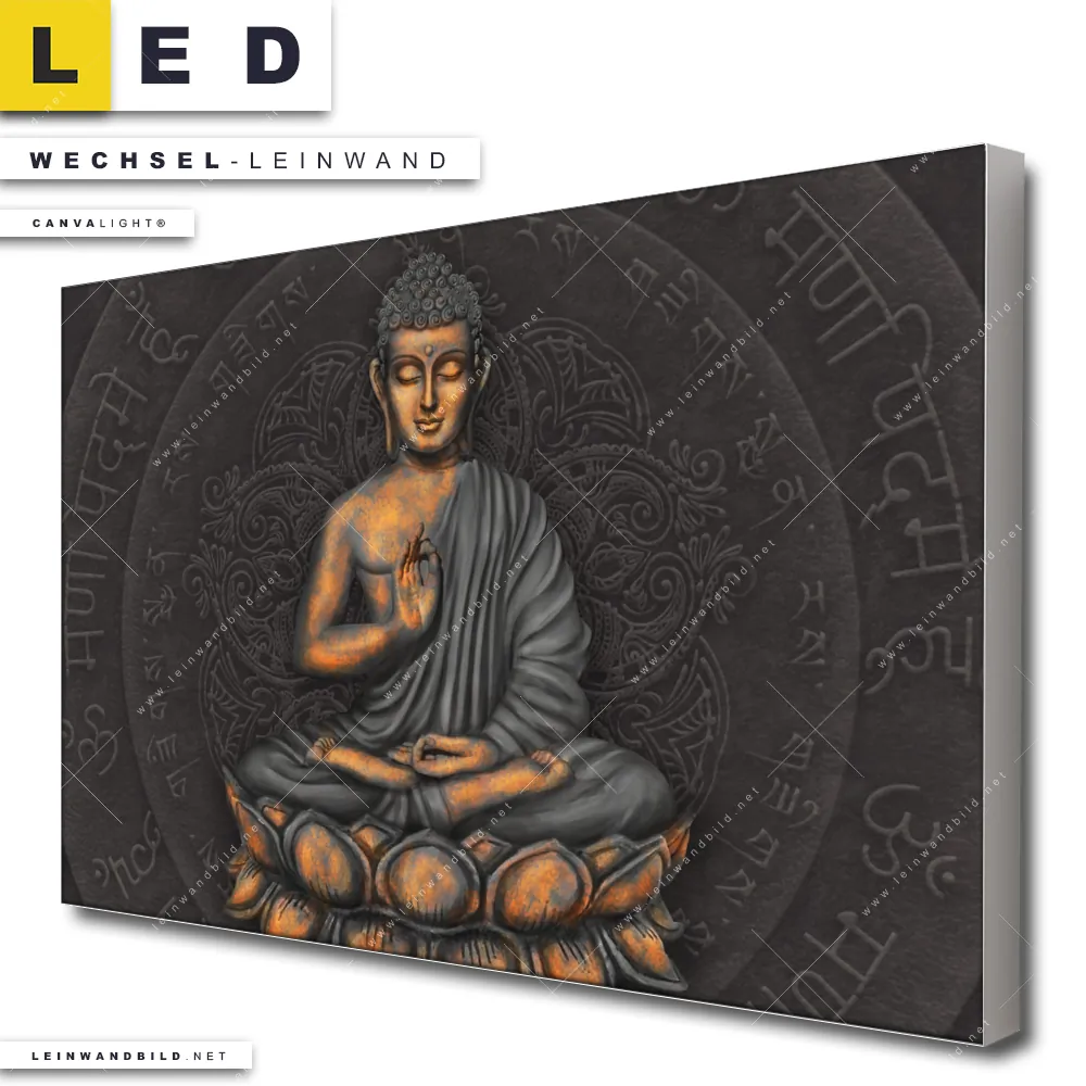 Du bist auf der Suche nach einer Buddha - Feng Shui Wechsel-Leinwand für Dein LED-Leinwandbild im Querformat? Begriffe wie Buddha, Buddhismus, Religion, Feng Shui, Zen, Meditation haben Dich auf der Suche nach Deiner Ersatz-Leinwand für dein breites LED Wandbild mit wechselbarer Leinwand inspiriert? Farben wie Schwarz, Gold dürfen auf Deinem neuen Wechselmotiv für Dein XXL Leinwand-LED-Bild nicht fehlen und Leinwände im Modern Art, Mixed Media Stil für Leuchtbilder passen perfekt zu Deinem Einrichtungsstil?