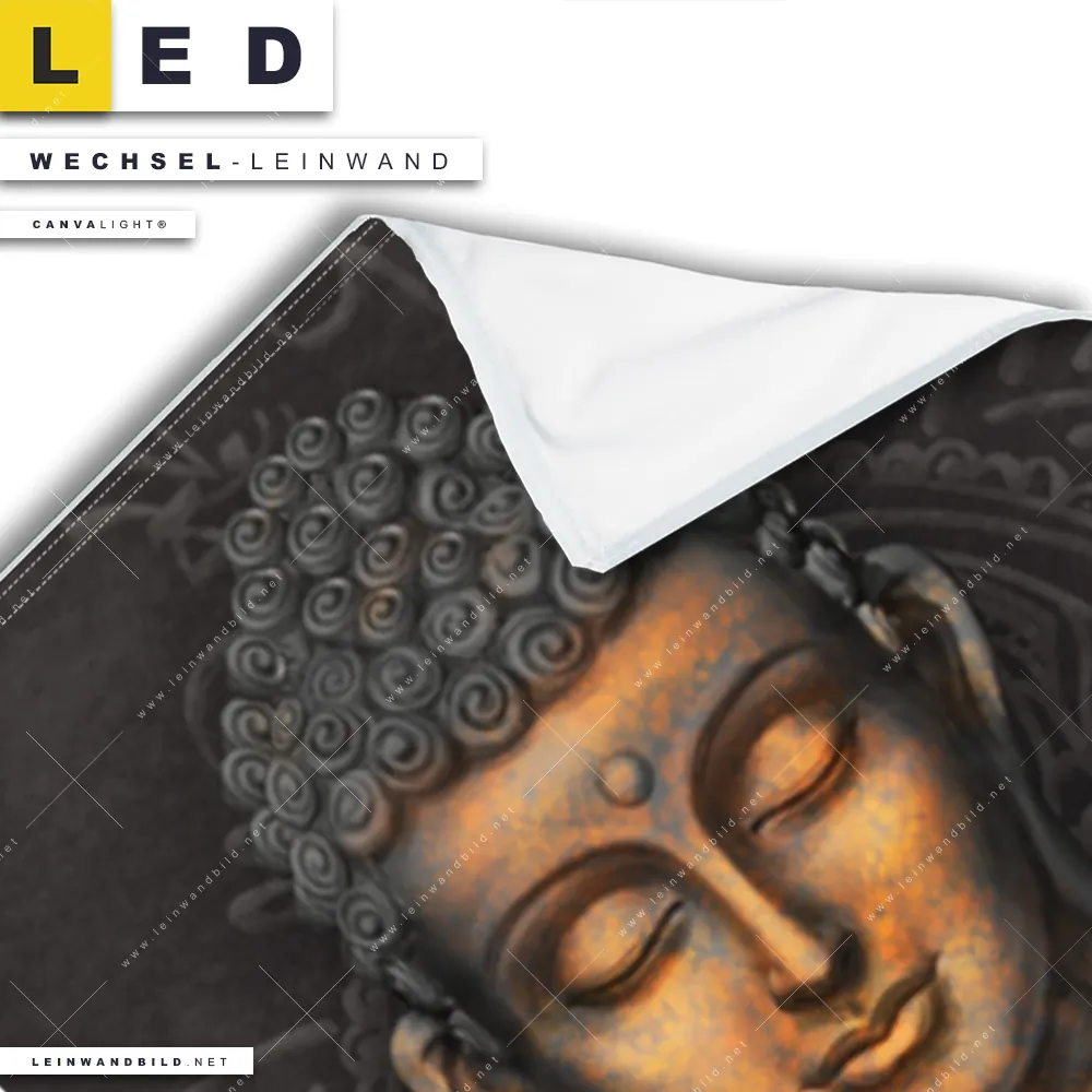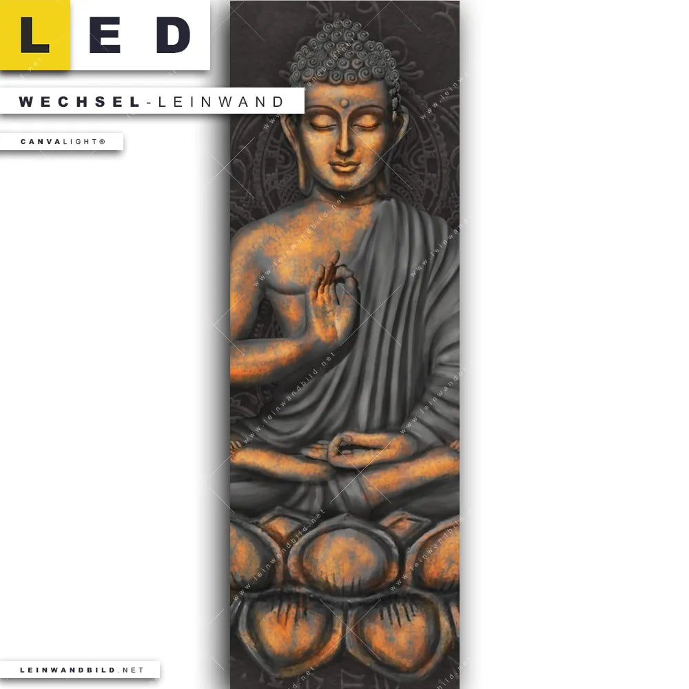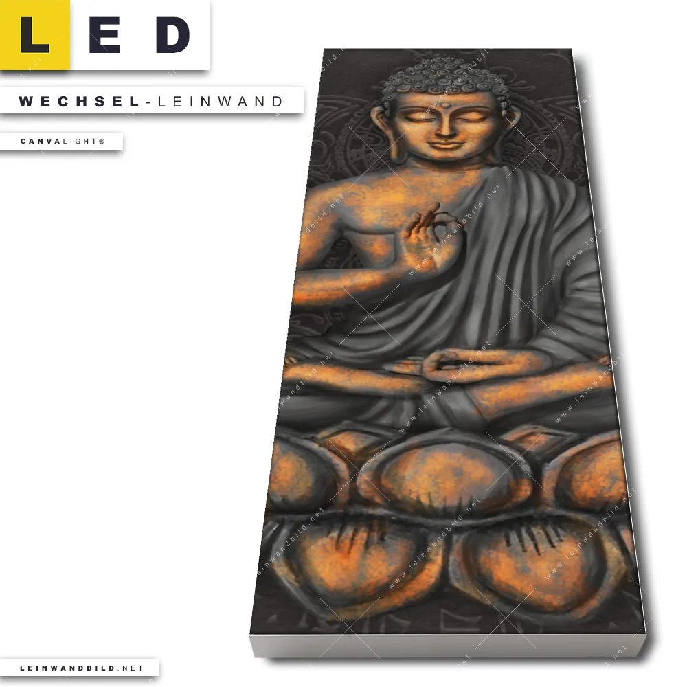 Du konfigurierst Deine individuelle LED Wechsel-Leinwand Canvalight® TEX | Goldener Buddha | Schmal und wir produzieren sie NEU für Dich. Unsere Buddha - Feng Shui Austausch-Fotoleinwände für Canvalight® LED Bilder sind KEINE Lagerware. Du bist Dir unsicher, welches Motiv oder Format das richtige für dein individuelles LED Wechselmotiv auf Leinwand ist, dann helfen wir dir gerne weiter und beraten dich!