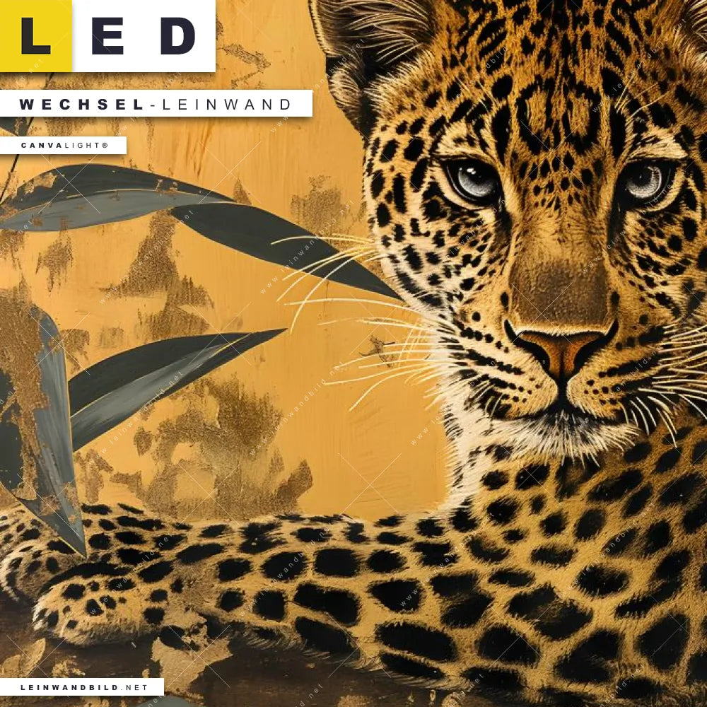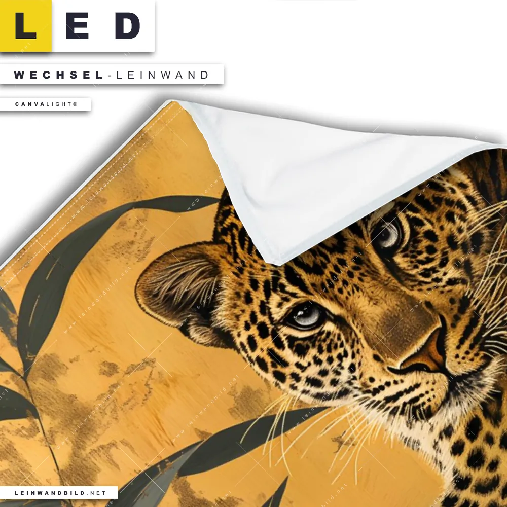 LED Wechsel-Leinwand Canvalight® TEX | Goldener Leopard - Imposanter Jäger | Hochformat