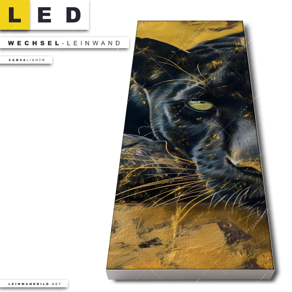 LED Wechsel-Leinwand Canvalight® TEX | Goldener Panther | Schmal