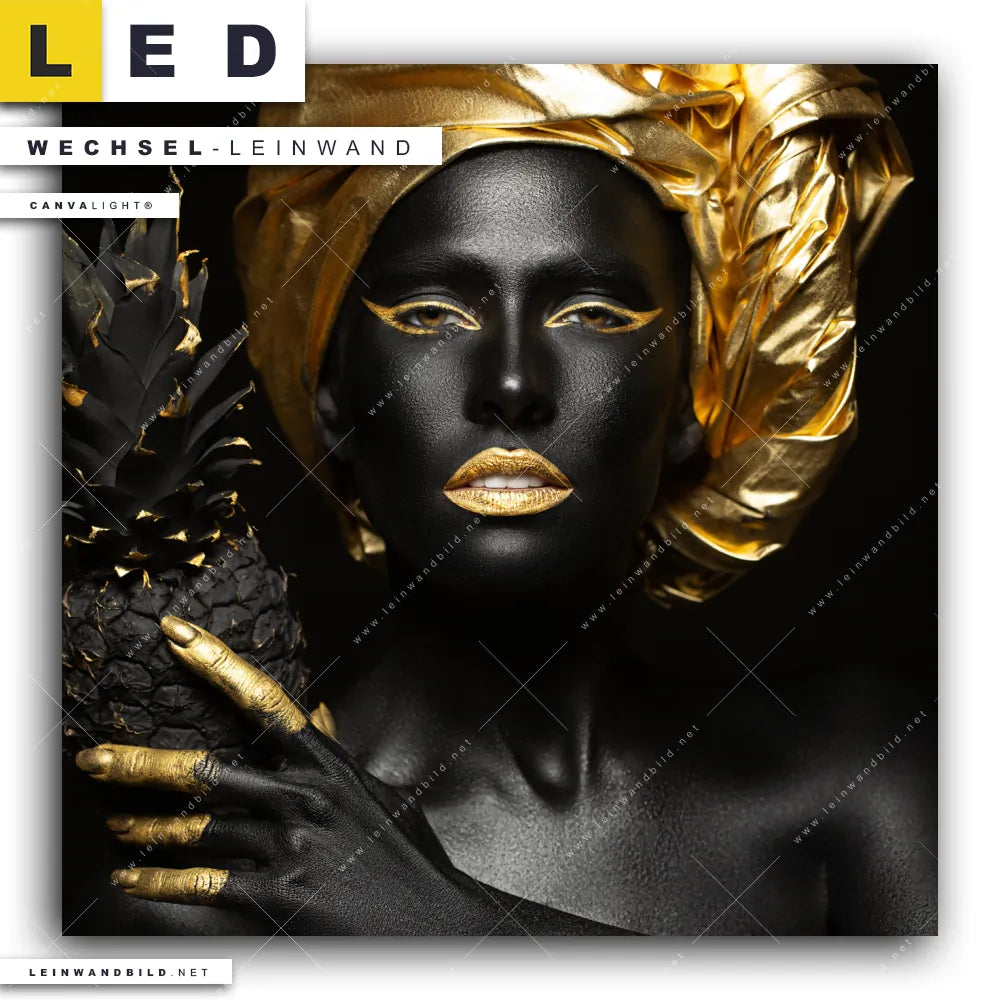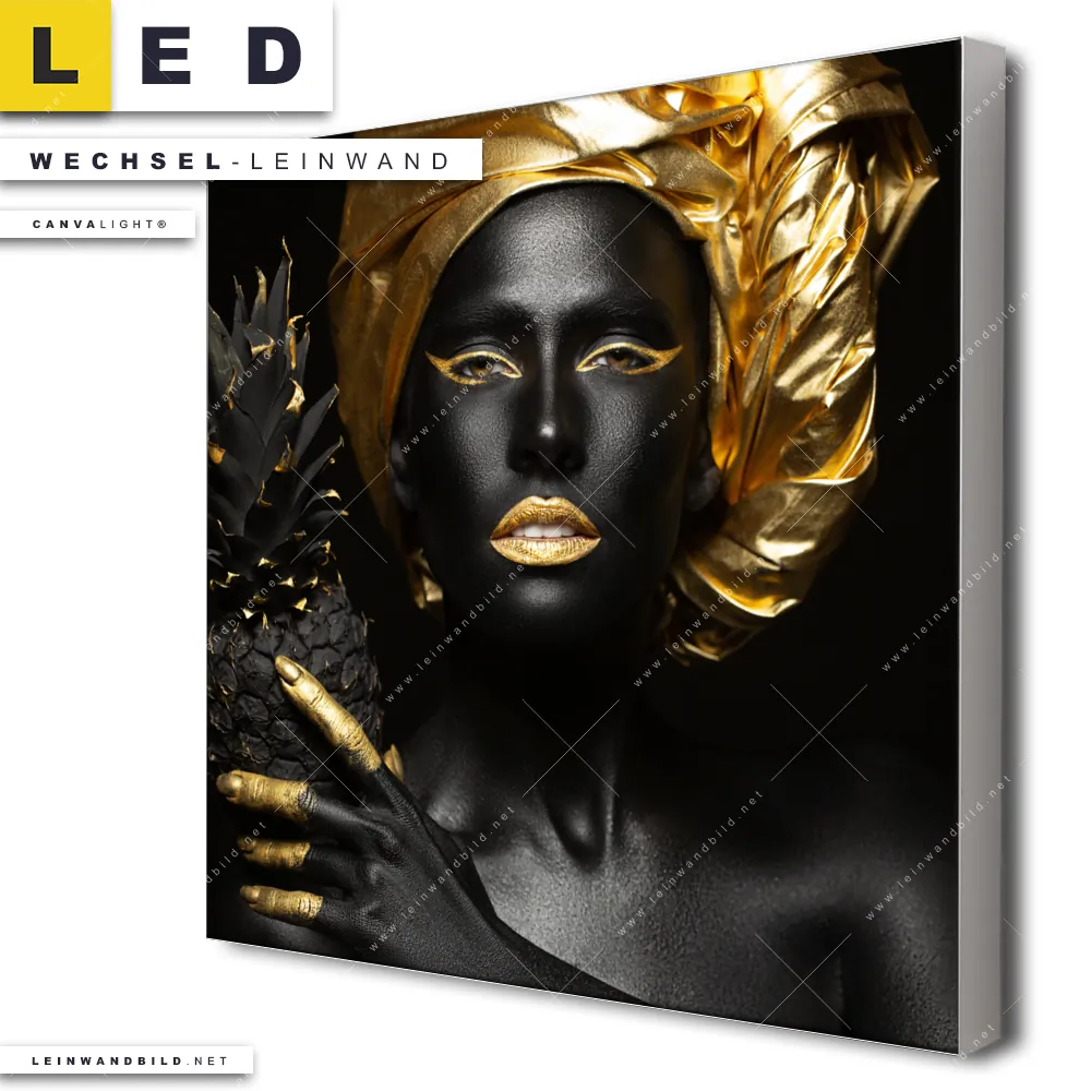LED Wechsel-Leinwand Canvalight® TEX | Goldenes Ananasmädchen No.1 | Quadrat