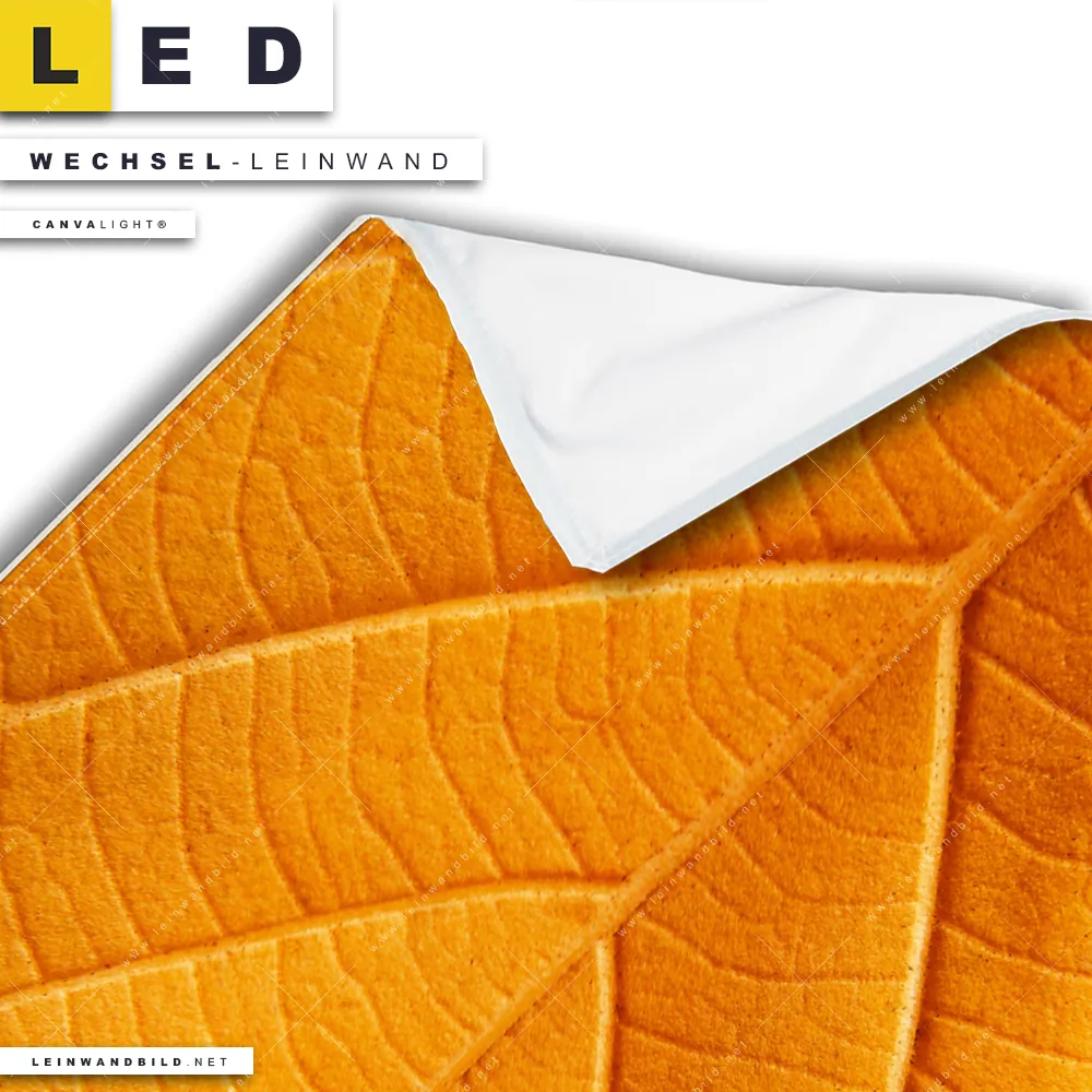 Du konfigurierst Deine individuelle LED Wechsel-Leinwand Canvalight® TEX | Goldenes Blatt | Quadrat und wir produzieren sie NEU für Dich. Unsere Muster - Texturen, Blumen - Botanik Austausch-Fotoleinwände für Canvalight® LED Bilder sind KEINE Lagerware. Du bist Dir unsicher, welches Motiv oder Format das richtige für dein individuelles LED Wechselmotiv auf Leinwand ist, dann helfen wir dir gerne weiter und beraten dich!