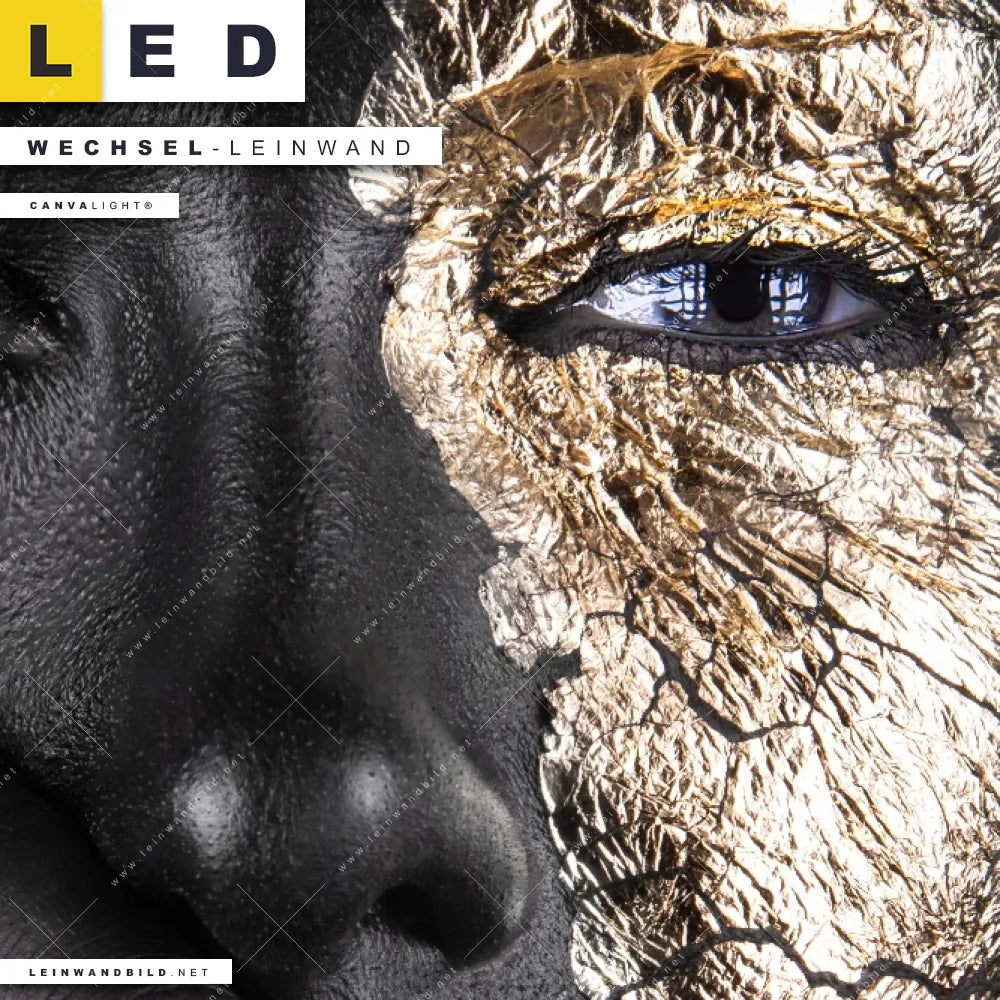 Du bist auf der Suche nach einer Porträts - Menschen Wechsel-Leinwand für Dein LED-Leinwandbild im Quadratischen Format? Begriffe wie Frau, Porträt, Erotik, modern, Gold, Farbe, Beauty, Gesicht, Körper, Make-up haben Dich auf der Suche nach Deiner Ersatz-Leinwand für dein LED Wandbild mit wechselbarer Leinwand inspiriert? Farben wie Gold, Schwarz dürfen auf Deinem neuen Wechselmotiv für Dein XXL Leinwand-LED-Bild nicht fehlen und Leinwände im Modern Art Stil für Leuchtbilder passen perfekt zu Deinem Einrichtungsstil?