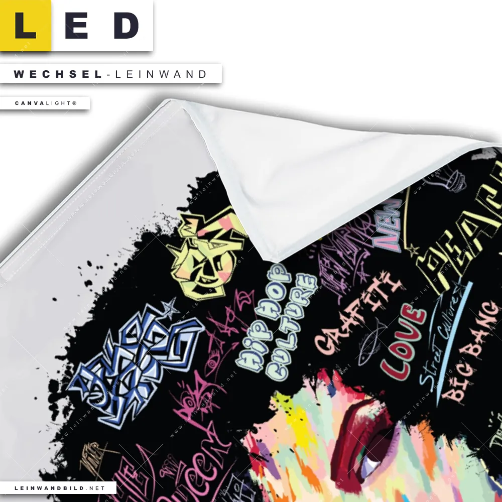 LED Wechsel-Leinwand Canvalight® TEX | Graffiti Afro No.1 | Hochformat