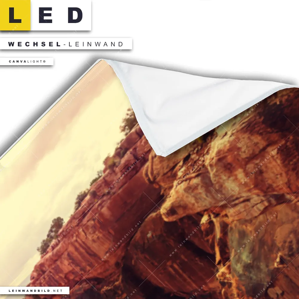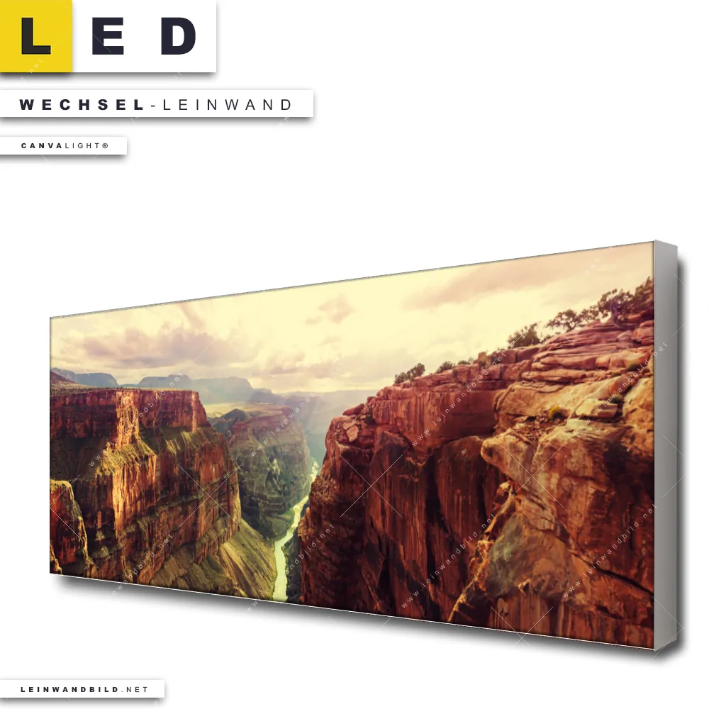 Du konfigurierst Deine individuelle LED Wechsel-Leinwand Canvalight® TEX | Grand Canyon Landschaft | Panorama und wir produzieren sie NEU für Dich. Unsere Landschaften Austausch-Fotoleinwände für Canvalight® LED Bilder sind KEINE Lagerware. Du bist Dir unsicher, welches Motiv oder Format das richtige für dein individuelles LED Wechselmotiv auf Leinwand ist, dann helfen wir dir gerne weiter und beraten dich!