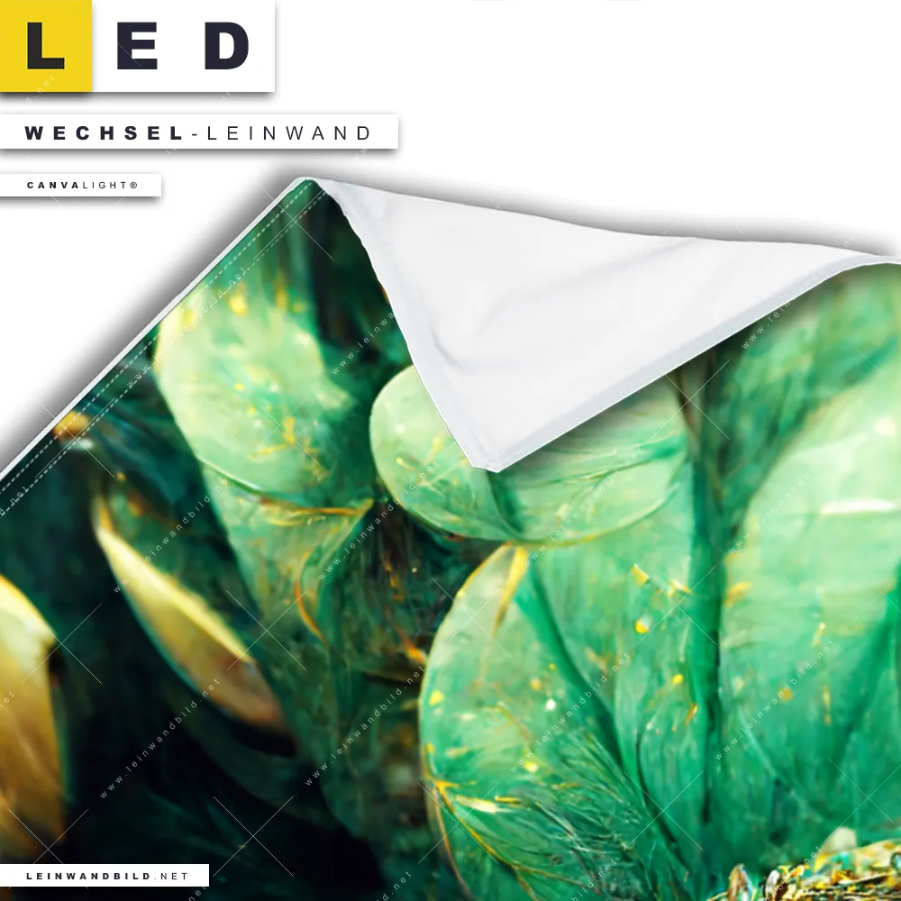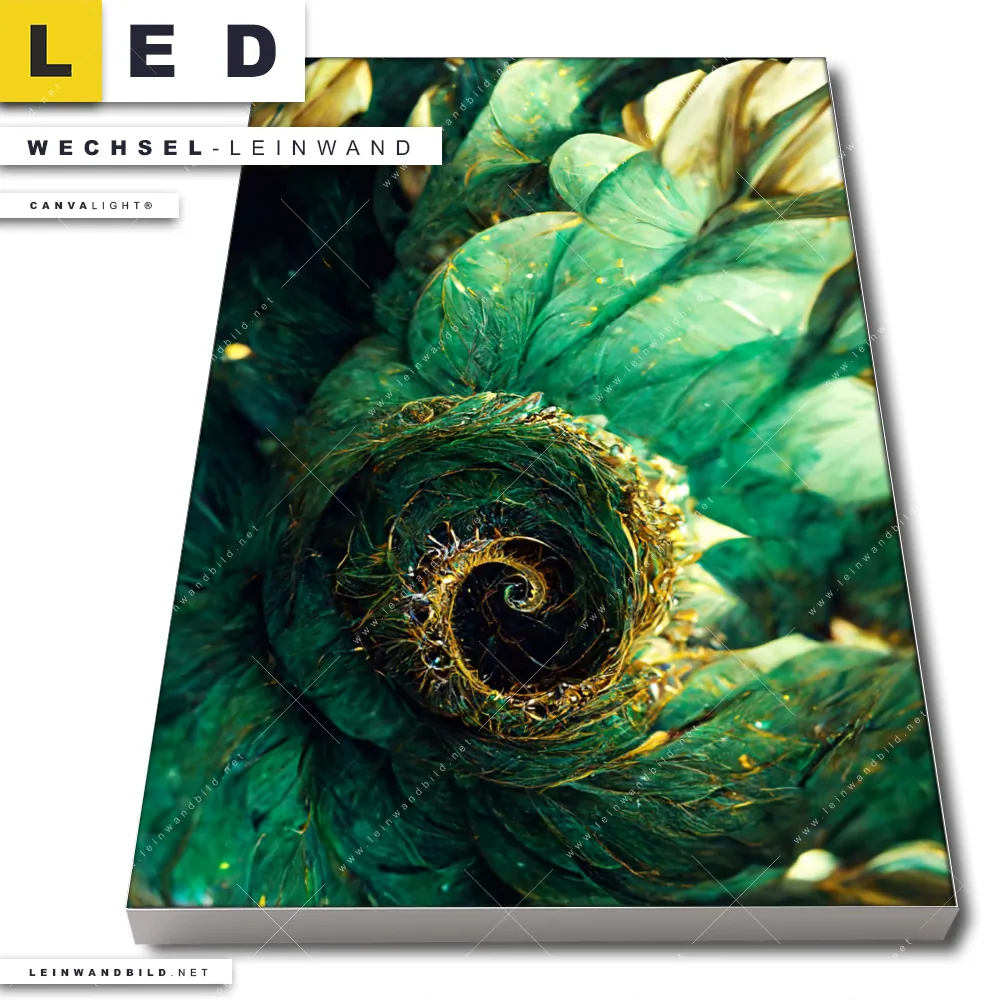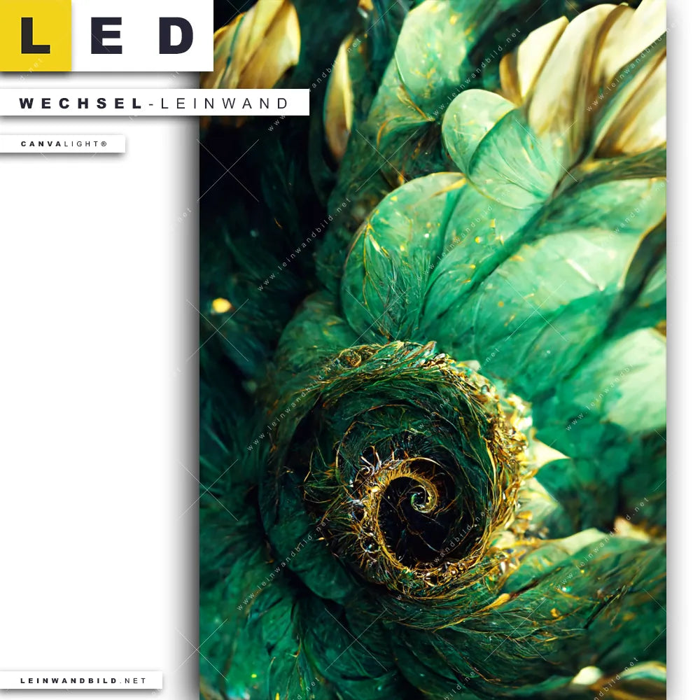 LED Wechsel-Leinwand Canvalight® TEX | Grüne Spiralblätter | Hochformat