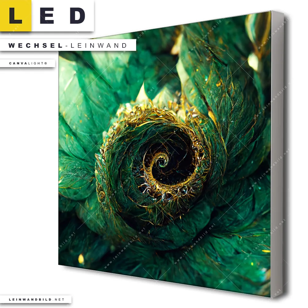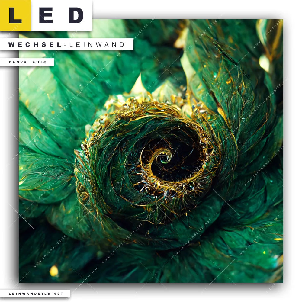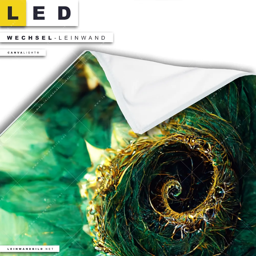 Du bist auf der Suche nach einer Blumen - Botanik, Muster - Texturen Wechsel-Leinwand für Dein LED-Leinwandbild im Quadratischen Format? Begriffe wie Blume, Blüte, Kunst, kreativ, Spirale, Wirbel, Nahaufnahme, Detail haben Dich auf der Suche nach Deiner Ersatz-Leinwand für dein LED Wandbild mit wechselbarer Leinwand inspiriert? Farben wie Schwarz, Grün, Gold, Hellgrün dürfen auf Deinem neuen Wechselmotiv für Dein XXL Leinwand-LED-Bild nicht fehlen und Leinwände im Abstrakt, Modern Art, Floral Stil für Leuchtbilder passen perfekt zu Deinem Einrichtungsstil?