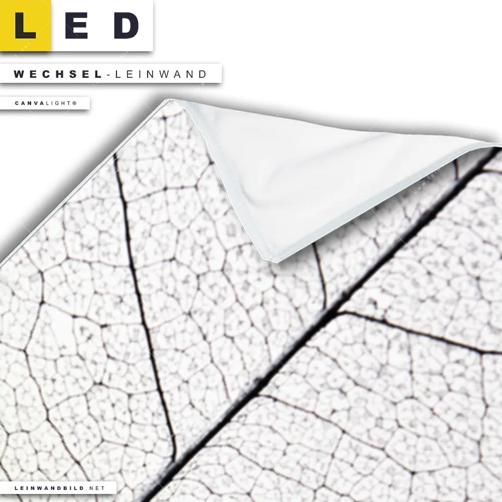 Du bist auf der Suche nach einer Muster - Texturen, Blumen - Botanik Wechsel-Leinwand für Dein LED-Leinwandbild im Panorama-Format? Begriffe wie Blätter, Pflanze, Natur, Nahaufnahme, Vogelperspektive, Draufsicht, Blatt, Makro, Close Up, Blattadern haben Dich auf der Suche nach Deiner Ersatz-Leinwand für dein extra breites LED Wandbild mit wechselbarer Leinwand inspiriert? Farben wie Weiss, Grün dürfen auf Deinem neuen Wechselmotiv für Dein XXL Leinwand-LED-Bild nicht fehlen und Leinwände im Modern Art, Floral Stil für Leuchtbilder passen perfekt zu Deinem Einrichtungsstil?