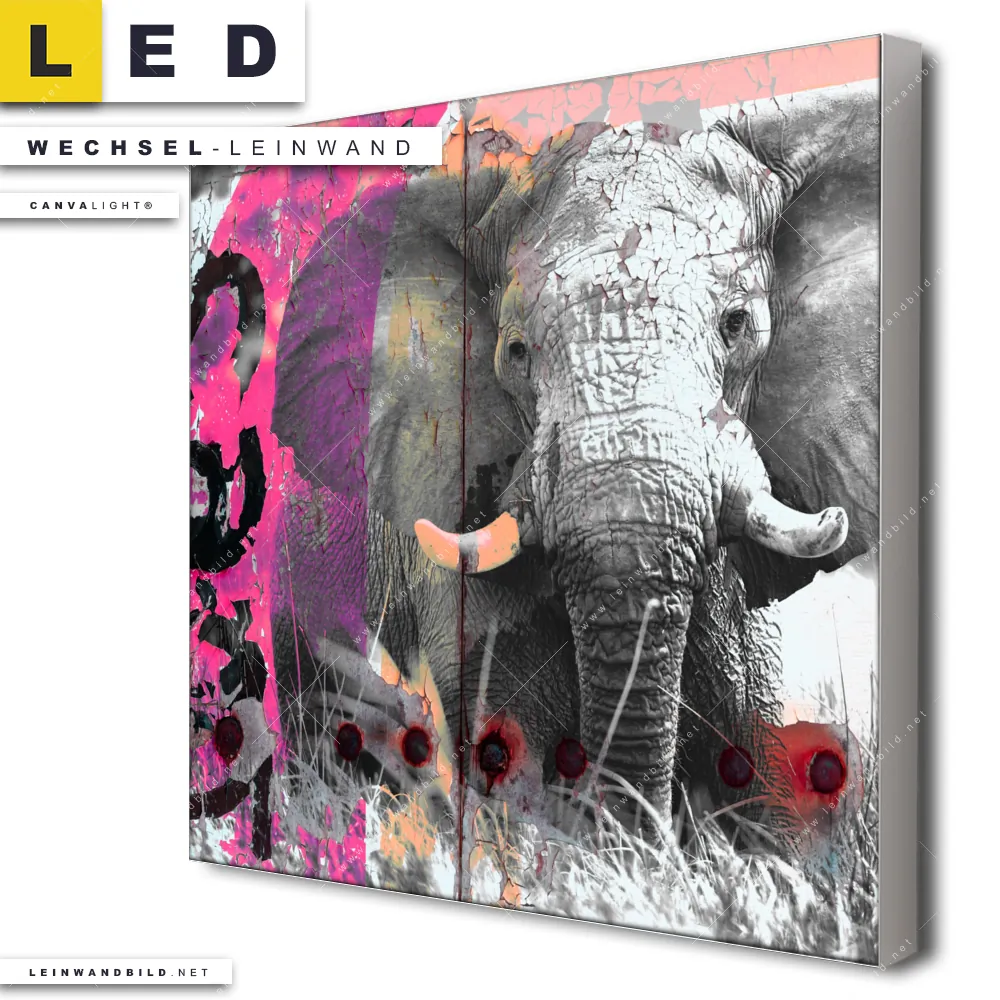 Du bist auf der Suche nach einer Tierwelt Wechsel-Leinwand für Dein LED-Leinwandbild im Quadratischen Format? Begriffe wie Tier, Grunge, Elefant, Afrika, Safari, industriell haben Dich auf der Suche nach Deiner Ersatz-Leinwand für dein LED Wandbild mit wechselbarer Leinwand inspiriert? Farben wie Pink, Grau , Lila, Weiss, Schwarz dürfen auf Deinem neuen Wechselmotiv für Dein XXL Leinwand-LED-Bild nicht fehlen und Leinwände im Modern Art, Abstrakt, Pop Art Stil für Leuchtbilder passen perfekt zu Deinem Einrichtungsstil?