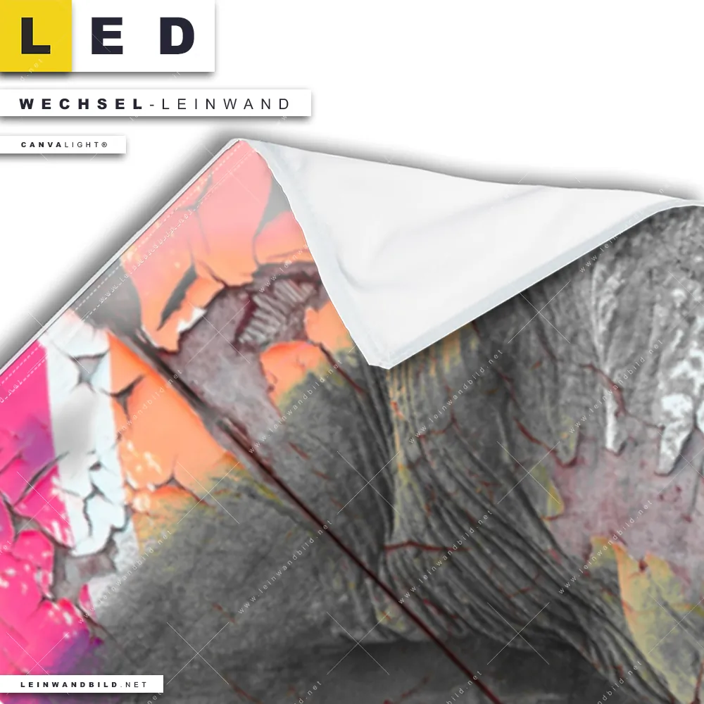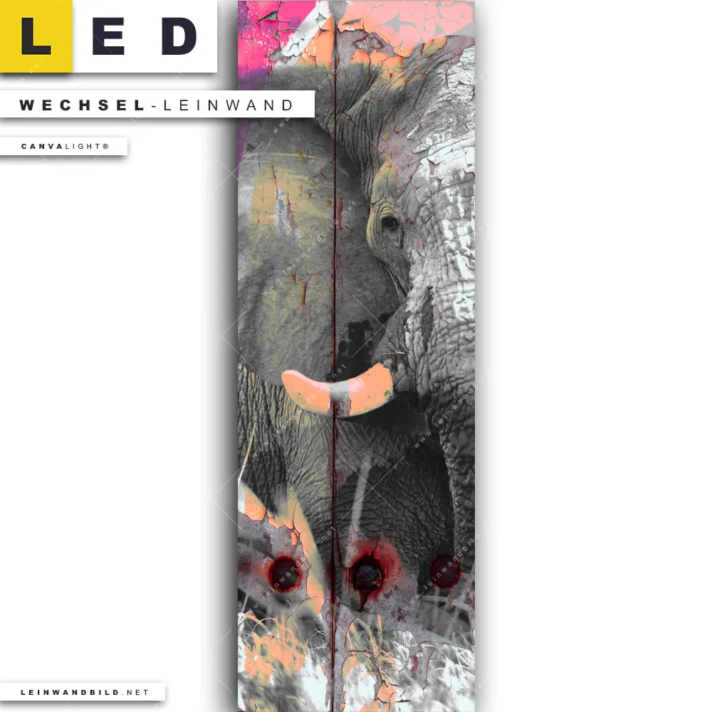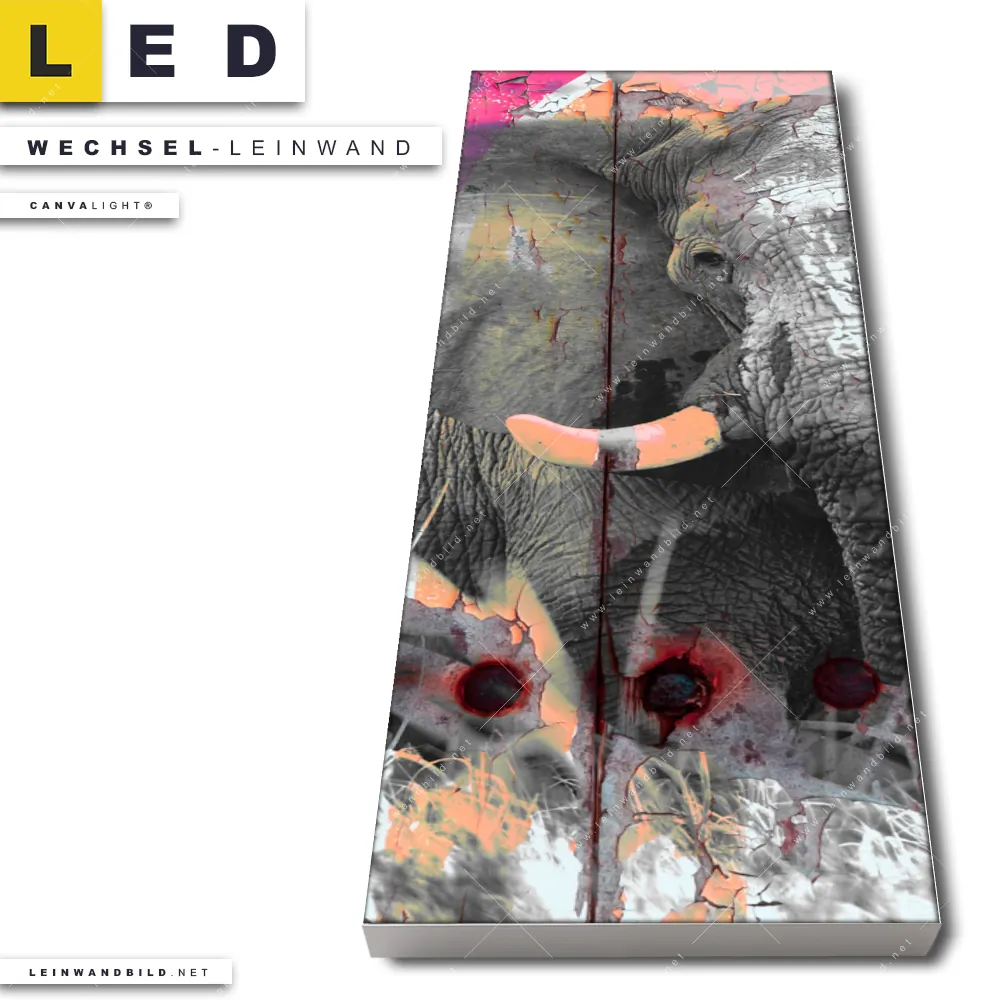 Du bist auf der Suche nach einer Tierwelt Wechsel-Leinwand für Dein LED-Leinwandbild im Schmalen Format? Begriffe wie Tier, Grunge, Elefant, Afrika, Safari, industriell haben Dich auf der Suche nach Deiner Ersatz-Leinwand für dein LED Wandbild im Panorama-Hochformat mit wechselbarer Leinwand inspiriert? Farben wie Pink, Grau , Lila, Weiss, Schwarz dürfen auf Deinem neuen Wechselmotiv für Dein XXL Leinwand-LED-Bild nicht fehlen und Leinwände im Modern Art, Abstrakt, Pop Art Stil für Leuchtbilder passen perfekt zu Deinem Einrichtungsstil?