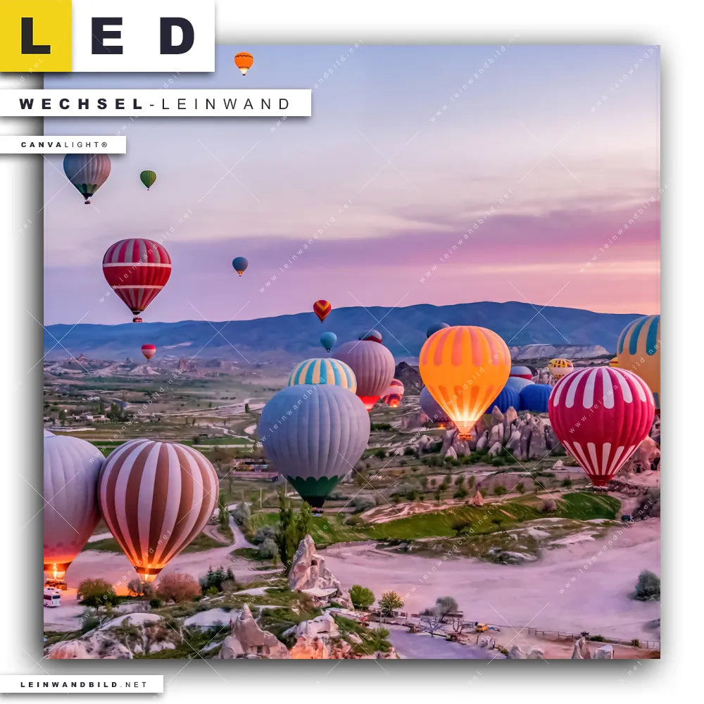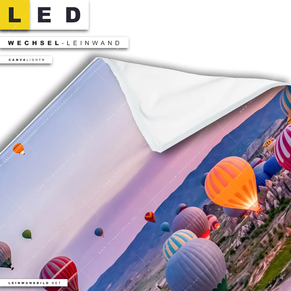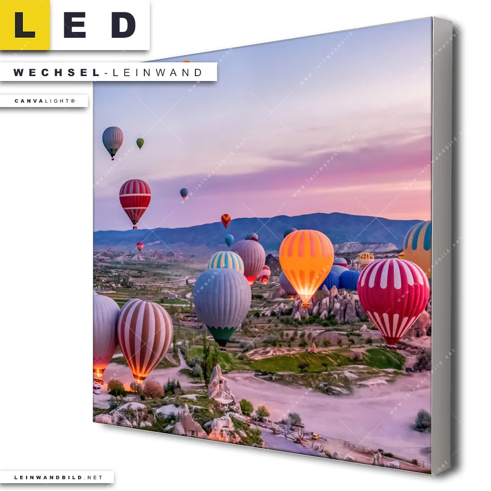 LED Wechsel-Leinwand Canvalight® TEX | Heißluftballons im Sonnenuntergang | Quadrat