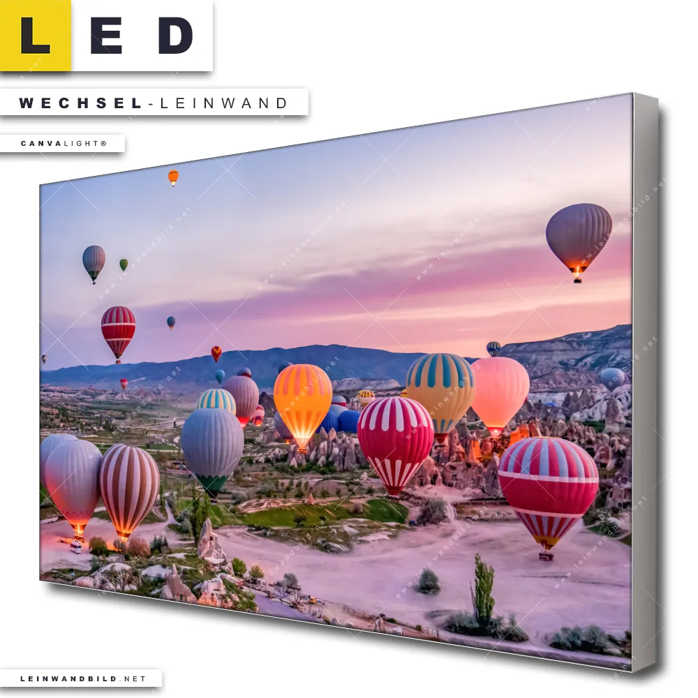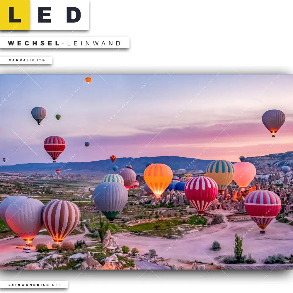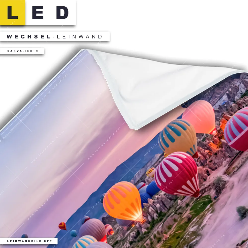 LED Wechsel-Leinwand Canvalight® TEX | Heißluftballons im Sonnenuntergang | Querformat