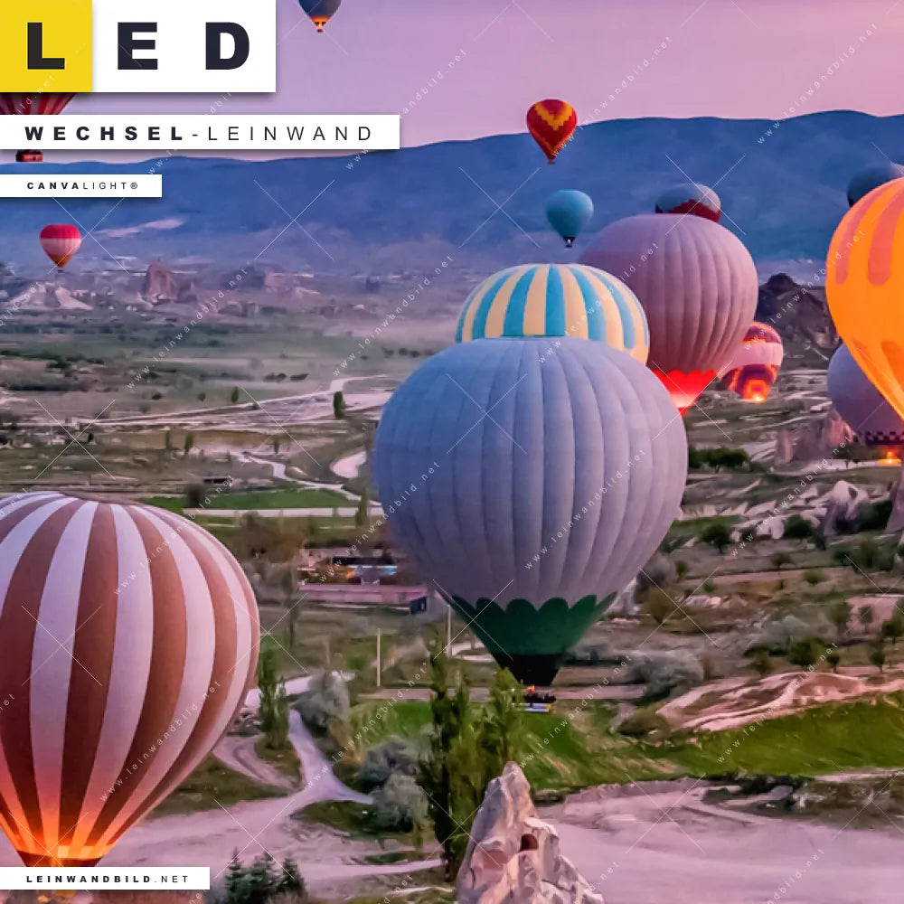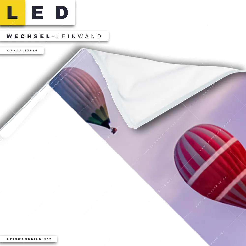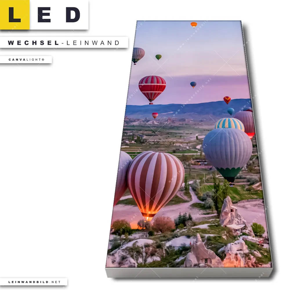 LED Wechsel-Leinwand Canvalight® TEX | Heißluftballons im Sonnenuntergang | Schmal