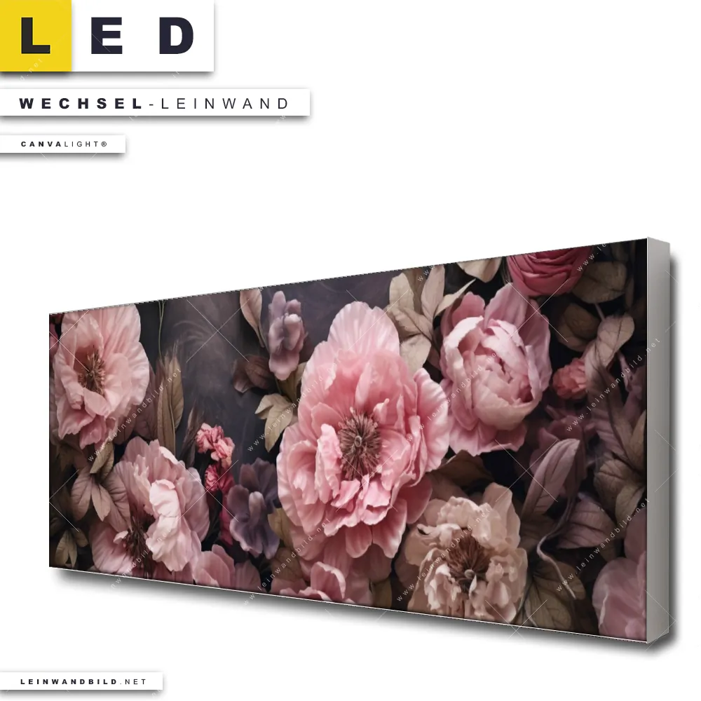 Du bist auf der Suche nach einer Blumen - Botanik Wechsel-Leinwand für Dein LED-Leinwandbild im Panorama-Format? Begriffe wie Pflanze, Natur, Blüte, Rose haben Dich auf der Suche nach Deiner Ersatz-Leinwand für dein extra breites LED Wandbild mit wechselbarer Leinwand inspiriert? Farben wie Grau , Rosa dürfen auf Deinem neuen Wechselmotiv für Dein XXL Leinwand-LED-Bild nicht fehlen und Leinwände im Floral, Retro - Vintage Stil für Leuchtbilder passen perfekt zu Deinem Einrichtungsstil?