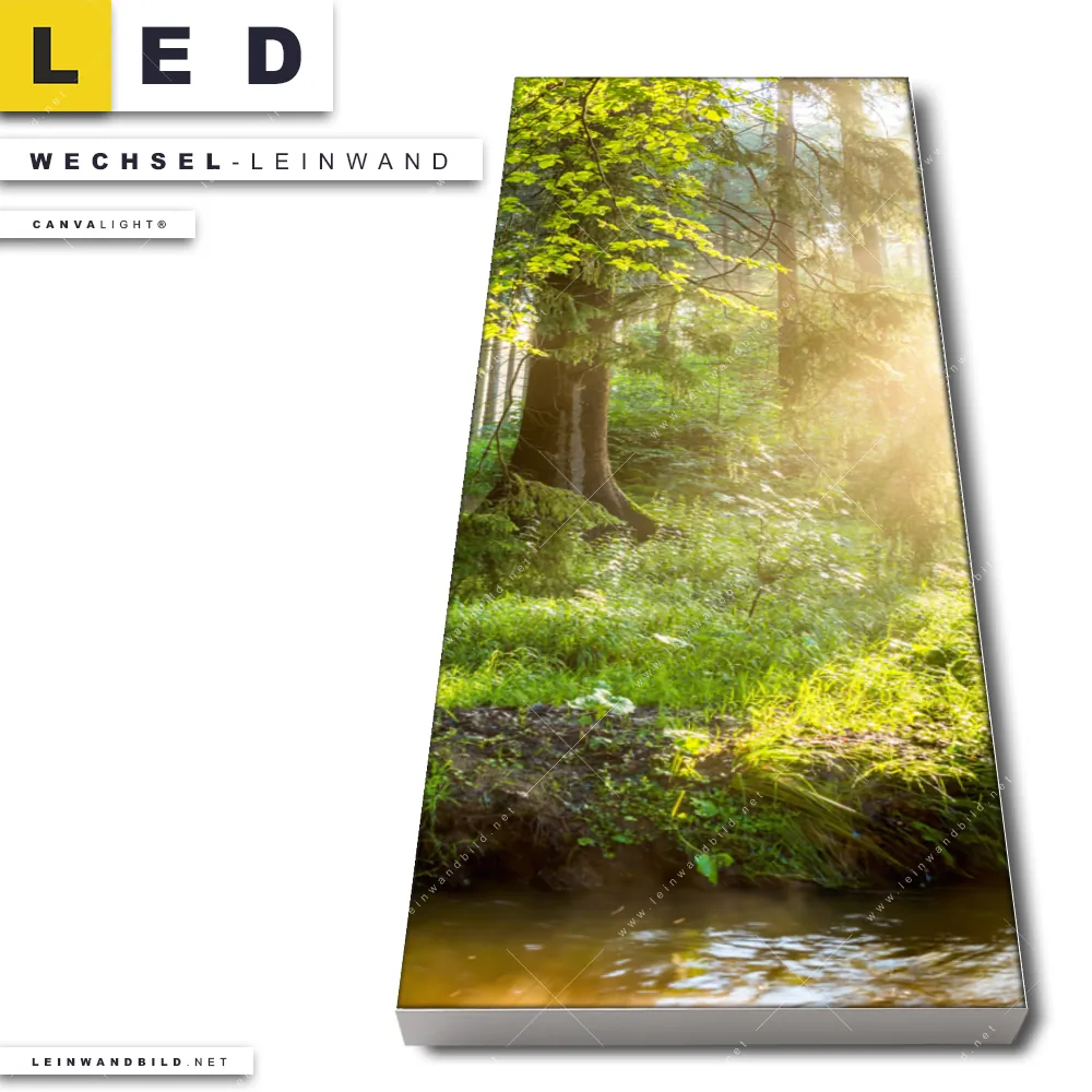 Du bist auf der Suche nach einer Landschaften, Wald - Bäume Wechsel-Leinwand für Dein LED-Leinwandbild im Schmalen Format? Begriffe wie Wald, Landschaft, Baum, Bäume, Natur, Sonne, Sonnenstrahlen, Licht, Fluss, Sonnenschein, Sonnenlicht, Waldweg, Nadelwald, Tannen, Weg haben Dich auf der Suche nach Deiner Ersatz-Leinwand für dein LED Wandbild im Panorama-Hochformat mit wechselbarer Leinwand inspiriert? Farben wie Grün, Braun, Hellgrün, Beige dürfen auf Deinem neuen Wechselmotiv für Dein XXL Leinwand-LED-Bild nicht fehlen und Leinwände im Natürlich - Realistisch, Modern Art Stil für Leuchtbilder passen perfekt zu Deinem Einrichtungsstil?
