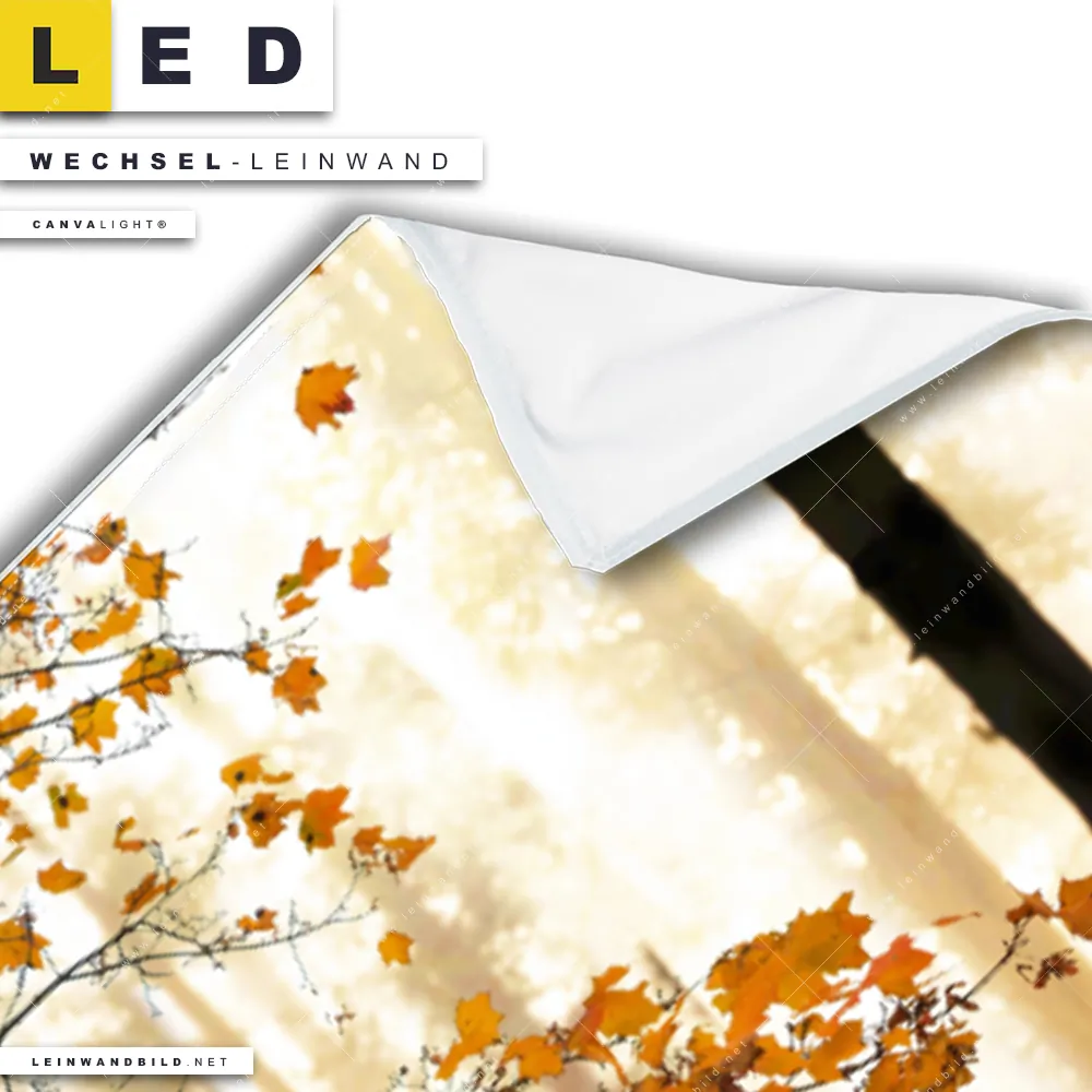 Du konfigurierst Deine individuelle LED Wechsel-Leinwand Canvalight® TEX | Herbstspaziergang | Panorama und wir produzieren sie NEU für Dich. Unsere Landschaften, Wald - Bäume Austausch-Fotoleinwände für Canvalight® LED Bilder sind KEINE Lagerware. Du bist Dir unsicher, welches Motiv oder Format das richtige für dein individuelles LED Wechselmotiv auf Leinwand ist, dann helfen wir dir gerne weiter und beraten dich!