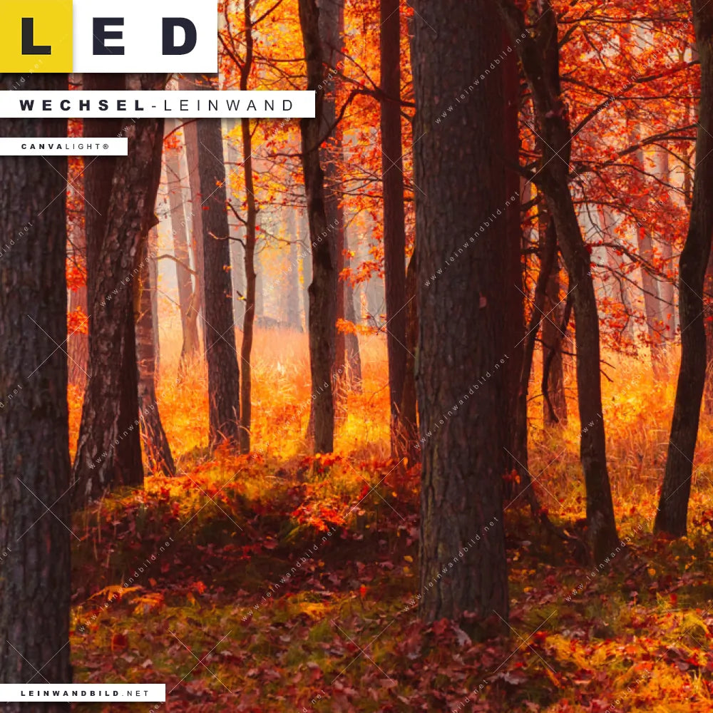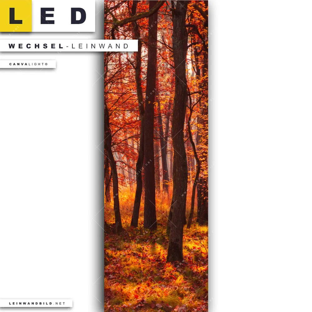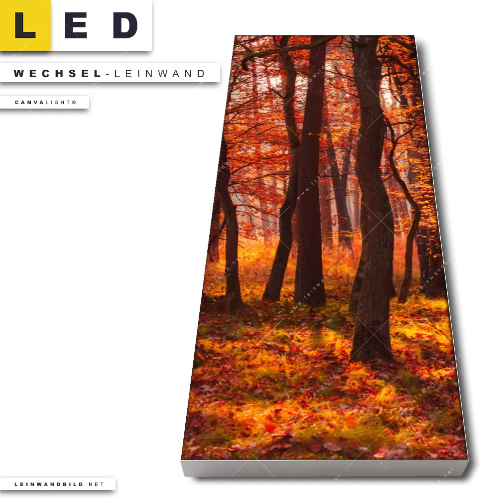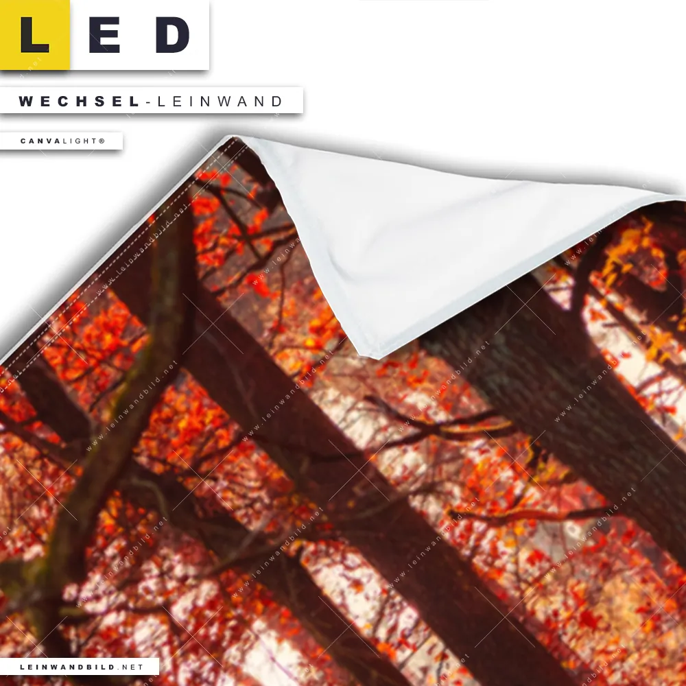 Du konfigurierst Deine individuelle LED Wechsel-Leinwand Canvalight® TEX | Herbstwald | Schmal und wir produzieren sie NEU für Dich. Unsere Landschaften, Wald - Bäume Austausch-Fotoleinwände für Canvalight® LED Bilder sind KEINE Lagerware. Du bist Dir unsicher, welches Motiv oder Format das richtige für dein individuelles LED Wechselmotiv auf Leinwand ist, dann helfen wir dir gerne weiter und beraten dich!