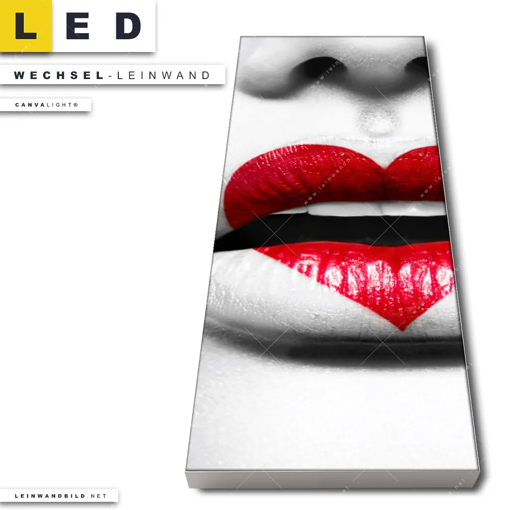 Du bist auf der Suche nach einer Porträts - Menschen Wechsel-Leinwand für Dein LED-Leinwandbild im Schmalen Format? Begriffe wie Frau, Lippen, Mund, Porträt, Erotik, modern, Beauty, Herz haben Dich auf der Suche nach Deiner Ersatz-Leinwand für dein LED Wandbild im Panorama-Hochformat mit wechselbarer Leinwand inspiriert? Farben wie Rot, Weiss, Schwarz, Grau dürfen auf Deinem neuen Wechselmotiv für Dein XXL Leinwand-LED-Bild nicht fehlen und Leinwände im Schwarz - Weiss, Modern Art Stil für Leuchtbilder passen perfekt zu Deinem Einrichtungsstil?
