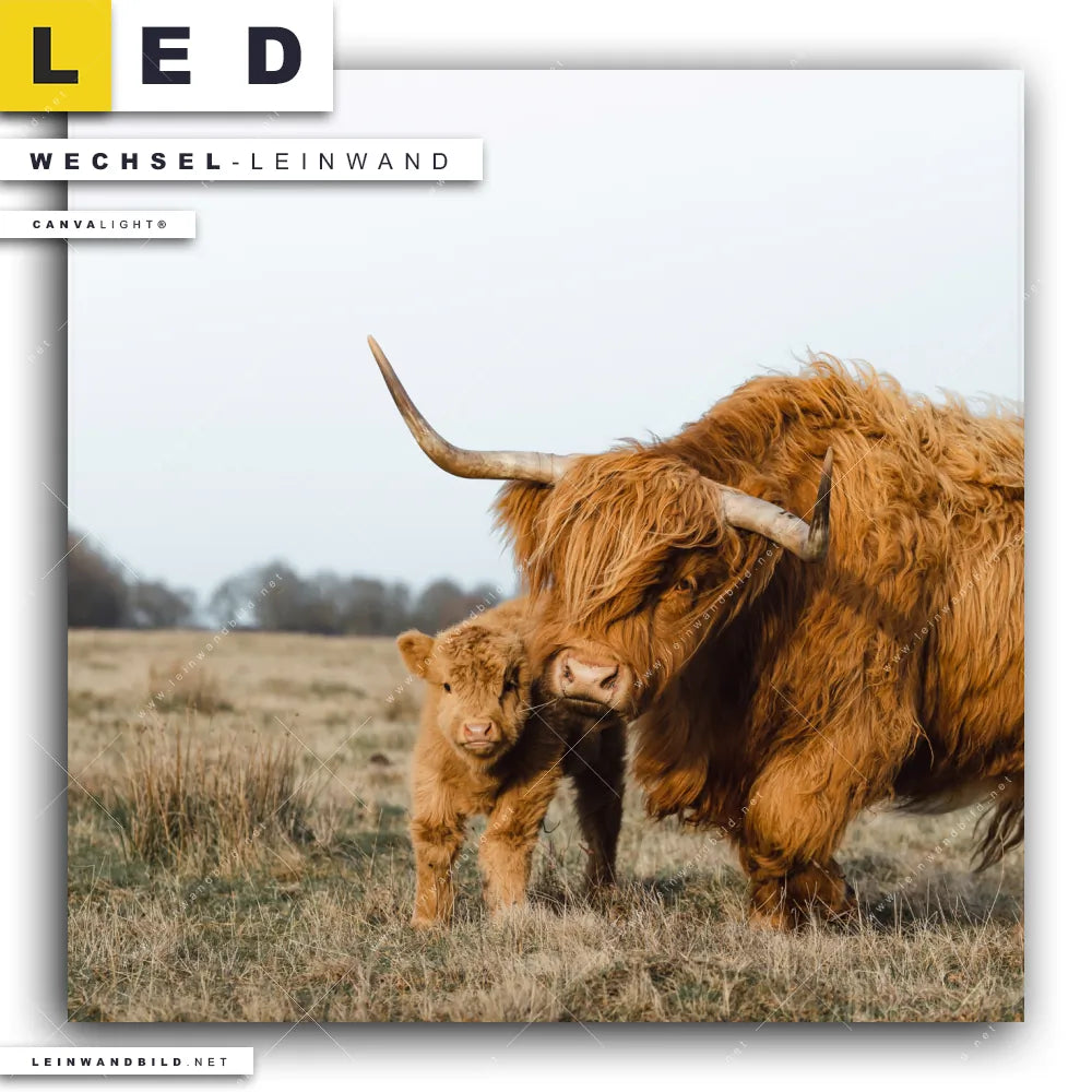 Du bist auf der Suche nach einer Tierwelt Wechsel-Leinwand für Dein LED-Leinwandbild im Quadratischen Format? Begriffe wie Tier, Stier, Hochlandkuh, Highlander, Büffel, Rind, Bulle, Hochlandrind, Wiese, Weide, Hörner, Gras, Kalb, Kälbchen, Schottisch haben Dich auf der Suche nach Deiner Ersatz-Leinwand für dein LED Wandbild mit wechselbarer Leinwand inspiriert? Farben wie Braun, Beige, Weiss dürfen auf Deinem neuen Wechselmotiv für Dein XXL Leinwand-LED-Bild nicht fehlen und Leinwände im Modern Art, Natürlich - Realistisch Stil für Leuchtbilder passen perfekt zu Deinem Einrichtungsstil?