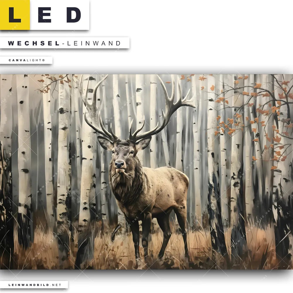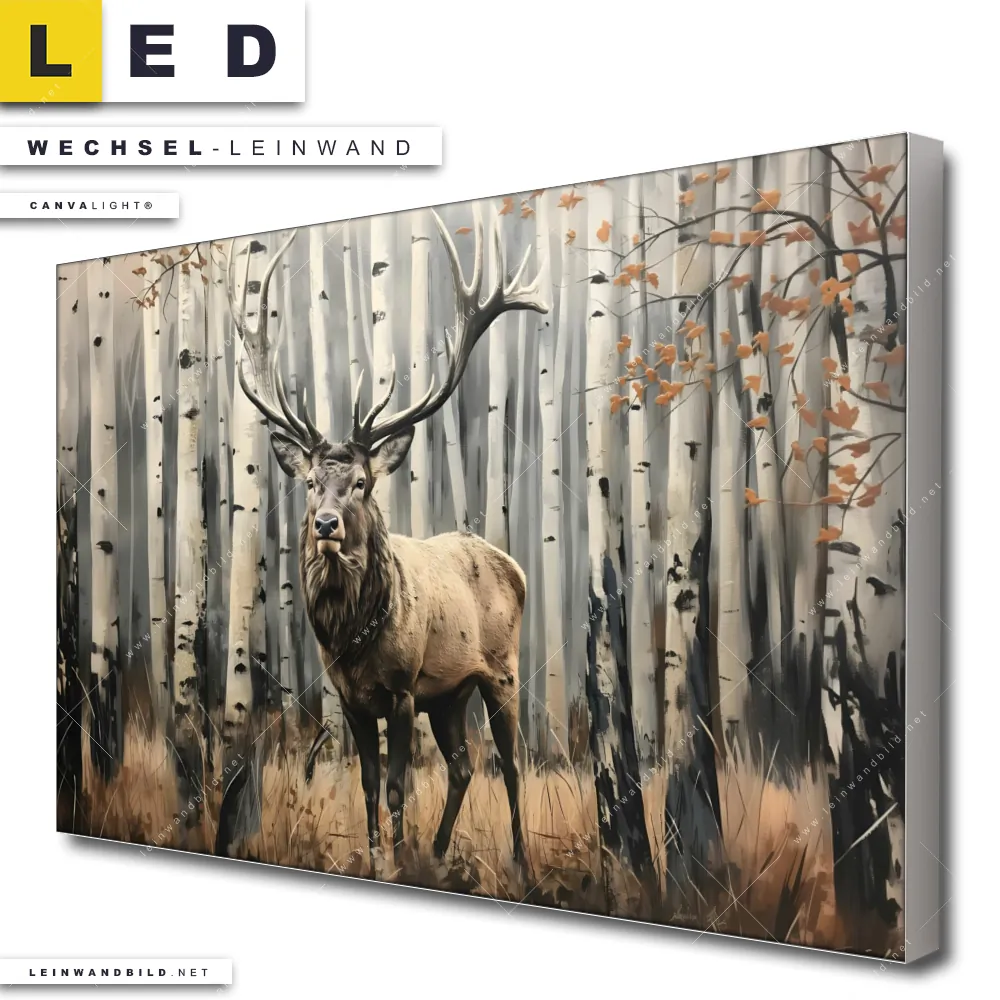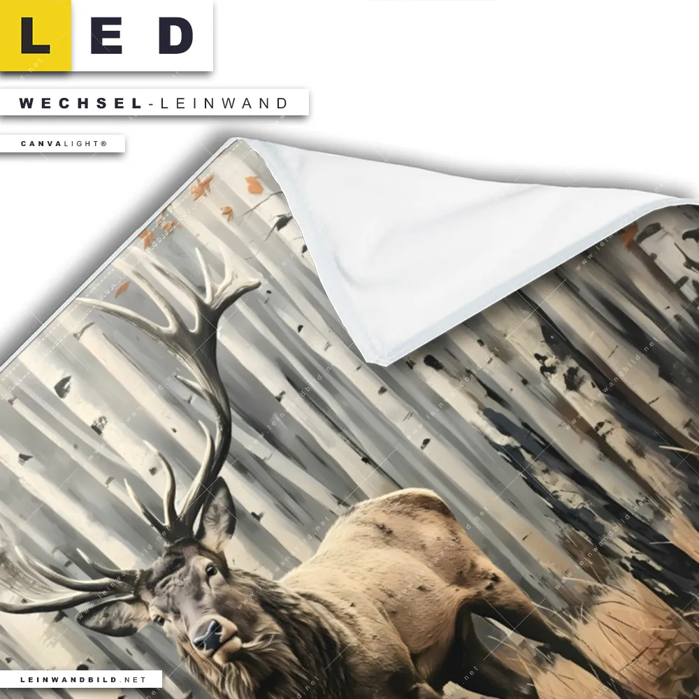 LED Wechsel-Leinwand Canvalight® TEX | Hirsch im Birkenwald | Querformat