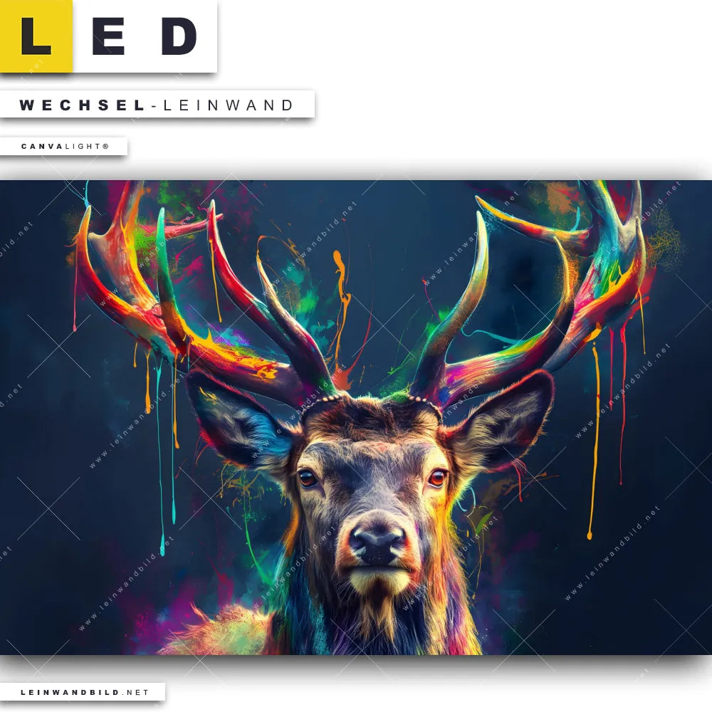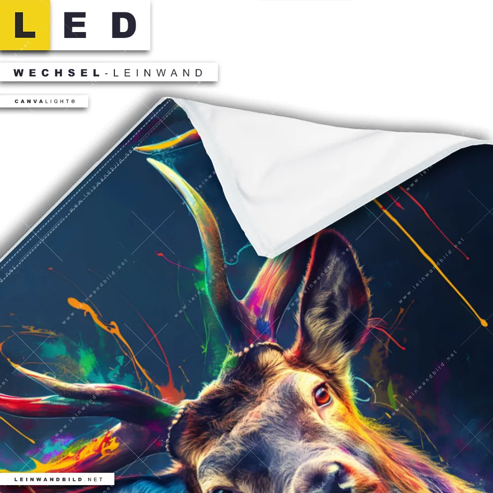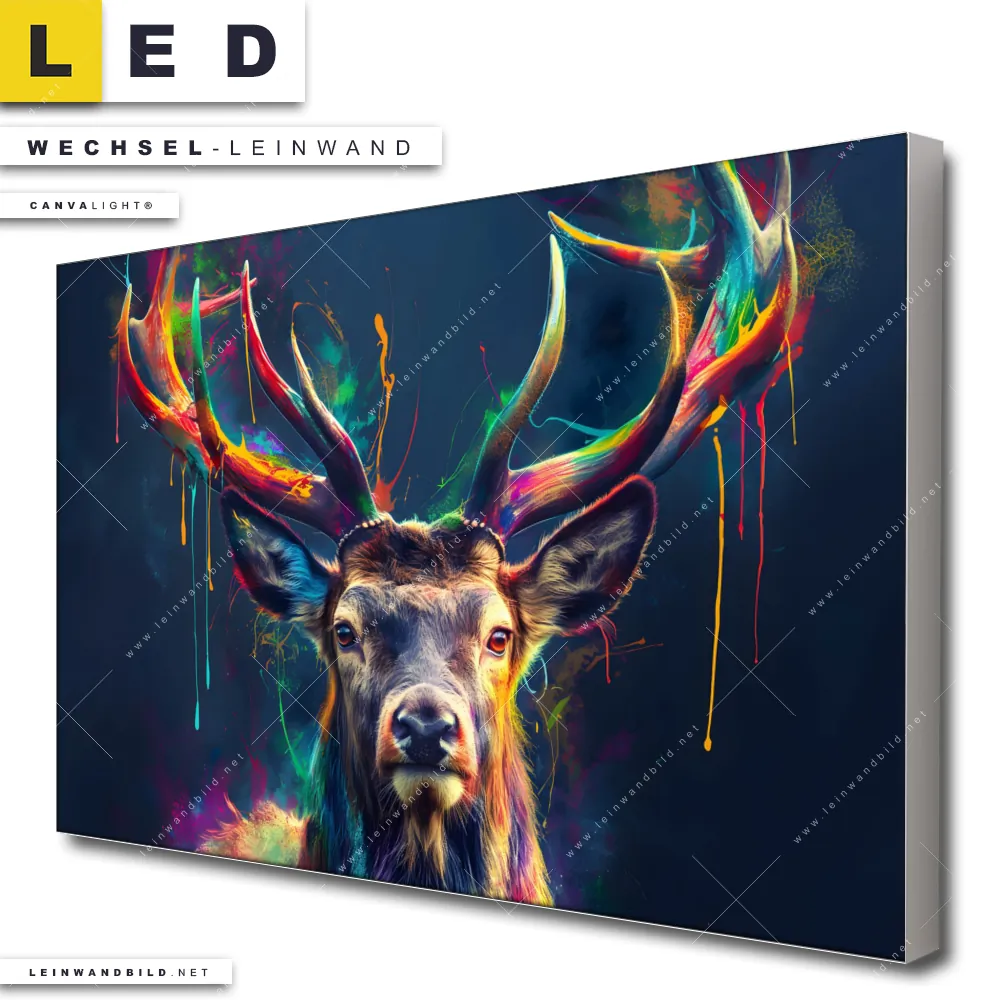 LED Wechsel-Leinwand Canvalight® TEX | Hirsch im leuchtenden Farbmix | Querformat