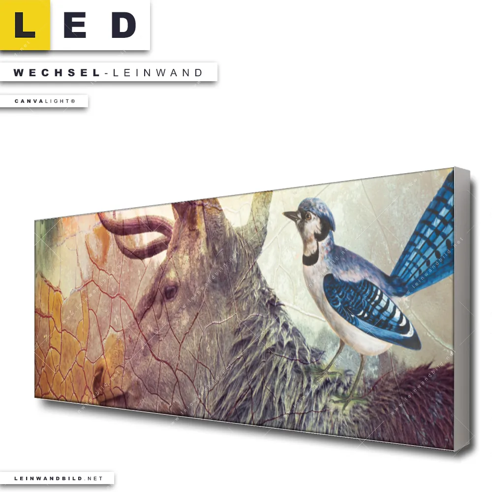 Du konfigurierst Deine individuelle LED Wechsel-Leinwand Canvalight® TEX | Hirsch & Vögel | Panorama und wir produzieren sie NEU für Dich. Unsere Tierwelt Austausch-Fotoleinwände für Canvalight® LED Bilder sind KEINE Lagerware. Du bist Dir unsicher, welches Motiv oder Format das richtige für dein individuelles LED Wechselmotiv auf Leinwand ist, dann helfen wir dir gerne weiter und beraten dich!
