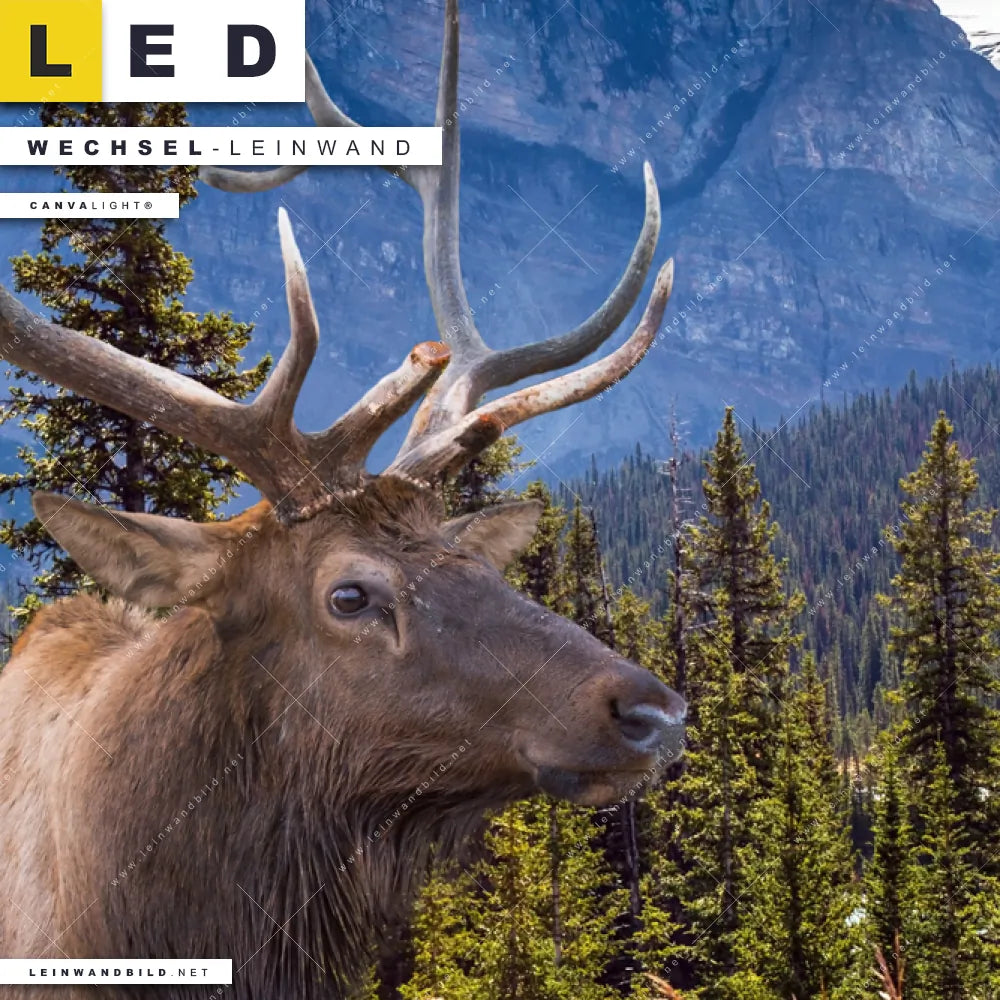 Du bist auf der Suche nach einer Landschaften, Tierwelt, Wald - Bäume Wechsel-Leinwand für Dein LED-Leinwandbild im Panorama-Format? Begriffe wie Wald, Landschaft, Bäume, Natur, Hirsch, Deer, Wild, Rotwild, Berge, Bergkette, Bergkulisse, Nadelwald haben Dich auf der Suche nach Deiner Ersatz-Leinwand für dein extra breites LED Wandbild mit wechselbarer Leinwand inspiriert? Farben wie Braun, Grün, Blau dürfen auf Deinem neuen Wechselmotiv für Dein XXL Leinwand-LED-Bild nicht fehlen und Leinwände im Natürlich - Realistisch Stil für Leuchtbilder passen perfekt zu Deinem Einrichtungsstil?