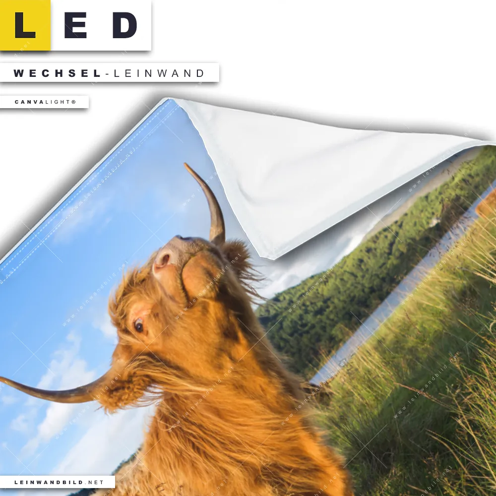 LED Wechsel-Leinwand Canvalight® TEX | Hochland-Bulle | Querformat