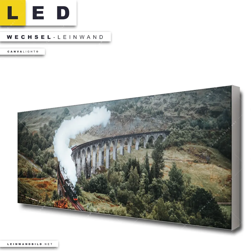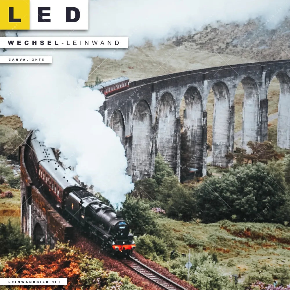 Du bist auf der Suche nach einer Fahrzeuge, Landschaften Wechsel-Leinwand für Dein LED-Leinwandbild im Panorama-Format? Begriffe wie Hogwarts-Zug, Dampfzug, Glenfinnan-Viadukt, Schottland, Brücke, Eisenbahn haben Dich auf der Suche nach Deiner Ersatz-Leinwand für dein extra breites LED Wandbild mit wechselbarer Leinwand inspiriert? Farben wie Ocker, Braun, Grün, Grau , Orange dürfen auf Deinem neuen Wechselmotiv für Dein XXL Leinwand-LED-Bild nicht fehlen und Leinwände im Natürlich - Realistisch Stil für Leuchtbilder passen perfekt zu Deinem Einrichtungsstil?