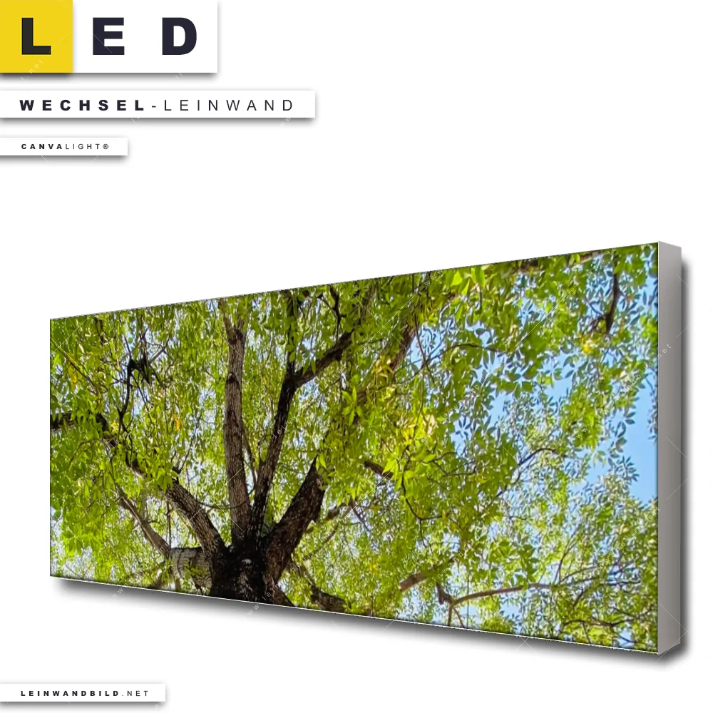Du bist auf der Suche nach einer Landschaften, Wald - Bäume Wechsel-Leinwand für Dein LED-Leinwandbild im Panorama-Format? Begriffe wie Wald, Bäume, Natur, Baum, Ruhe, Stille, Baumkrone, Froschperspektive haben Dich auf der Suche nach Deiner Ersatz-Leinwand für dein extra breites LED Wandbild mit wechselbarer Leinwand inspiriert? Farben wie Grün, Weiss, Grau dürfen auf Deinem neuen Wechselmotiv für Dein XXL Leinwand-LED-Bild nicht fehlen und Leinwände im Natürlich - Realistisch Stil für Leuchtbilder passen perfekt zu Deinem Einrichtungsstil?