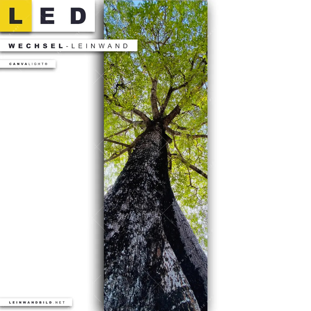 Du bist auf der Suche nach einer Landschaften, Wald - Bäume Wechsel-Leinwand für Dein LED-Leinwandbild im Schmalen Format? Begriffe wie Wald, Bäume, Natur, Baum, Ruhe, Stille, Baumkrone, Froschperspektive haben Dich auf der Suche nach Deiner Ersatz-Leinwand für dein LED Wandbild im Panorama-Hochformat mit wechselbarer Leinwand inspiriert? Farben wie Grün, Weiss, Grau dürfen auf Deinem neuen Wechselmotiv für Dein XXL Leinwand-LED-Bild nicht fehlen und Leinwände im Natürlich - Realistisch Stil für Leuchtbilder passen perfekt zu Deinem Einrichtungsstil?