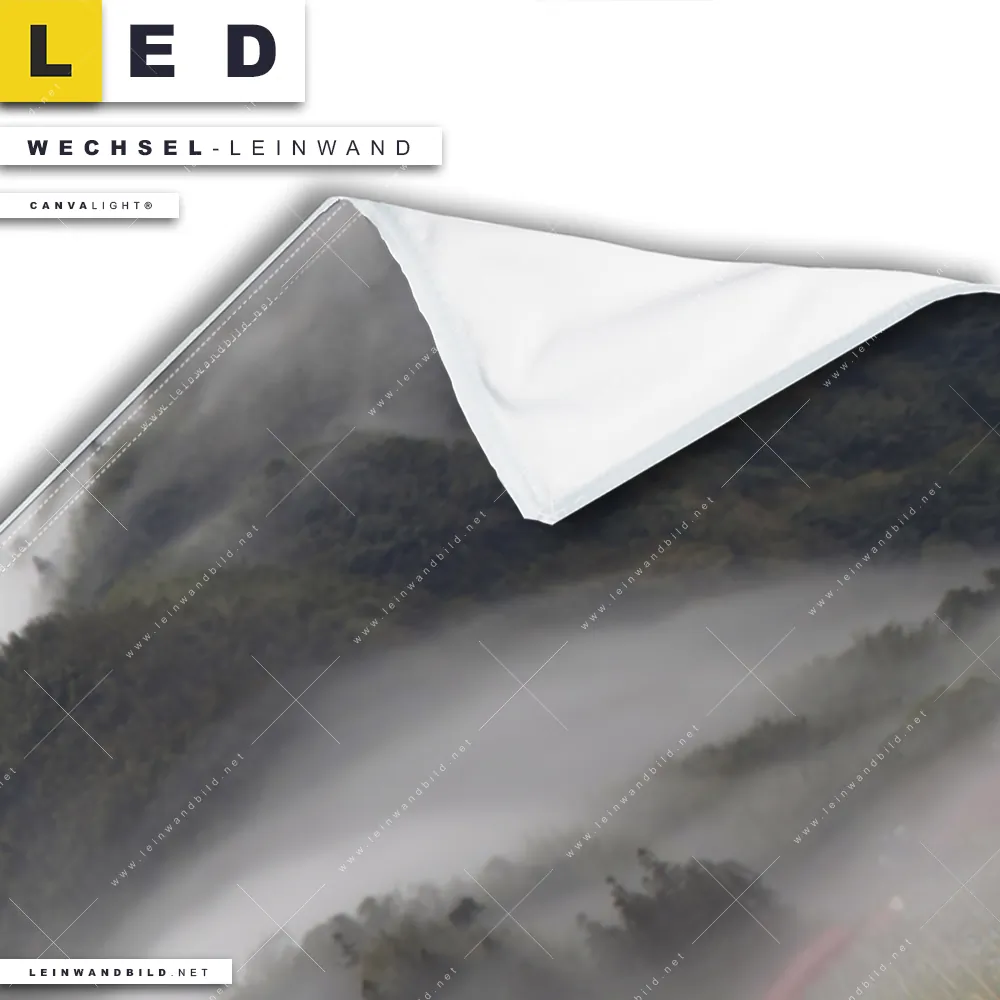 Du konfigurierst Deine individuelle LED Wechsel-Leinwand Canvalight® TEX | Holztreppe auf Berg mit Wolken | Panorama und wir produzieren sie NEU für Dich. Unsere Landschaften Austausch-Fotoleinwände für Canvalight® LED Bilder sind KEINE Lagerware. Du bist Dir unsicher, welches Motiv oder Format das richtige für dein individuelles LED Wechselmotiv auf Leinwand ist, dann helfen wir dir gerne weiter und beraten dich!